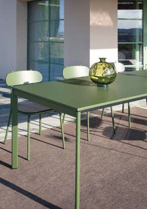 Galvanized steel table with aluminum extendable system, stainless steel ball bearings and galvanized steel or HPL top.