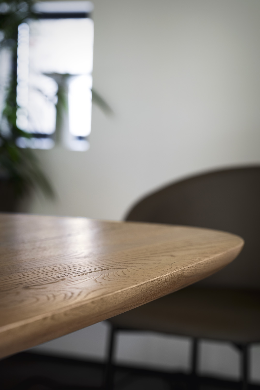 CAMEO CS4124-FSW table by Calligaris. Among the most loved tables by Calligaris, Cameo combines functionality and aesthetics. The combination of the oval top and the central column ensures maximum seating comfort. The oval returns in all the elements, which are also characterized by the sophisticated combinations of different materials. Shaped top in Solid Oak with soap-shaped edge (thickness 5 cm).