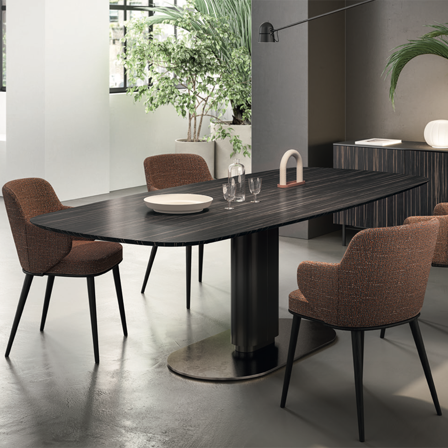 CAMEO CS4124-FS table by Calligaris. Among the most loved tables by Calligaris, Cameo combines functionality and aesthetics. The combination of the oval top, also extendable, and the central column ensures maximum seating comfort. The oval returns in all the elements, which are also characterized by the sophisticated combinations of different materials, among which the ribbed finish for the column stands out.