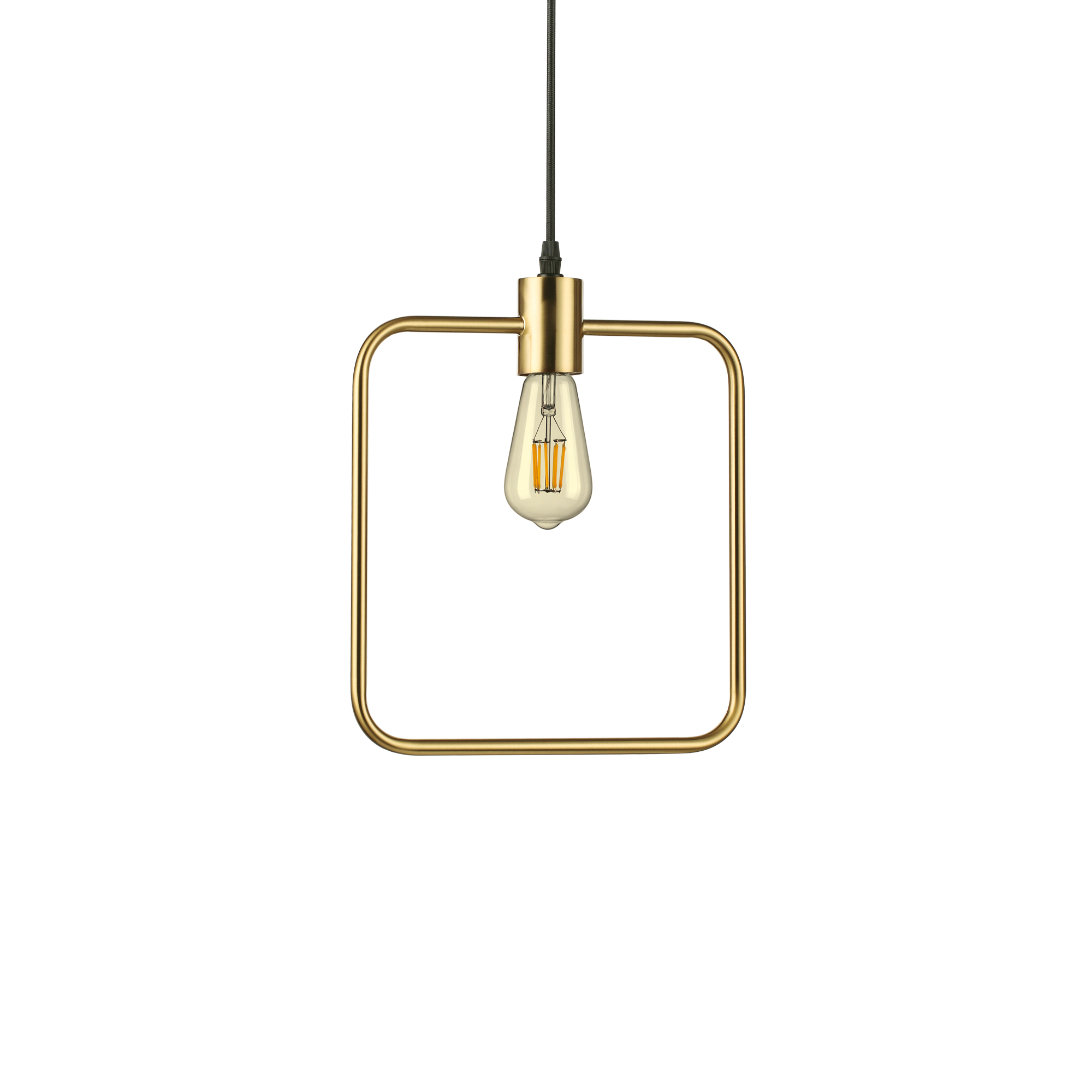 Rosette, lamp holder cover and decorative structure entirely in satin brass finished metal. Black fabric cable. Bulb not included.