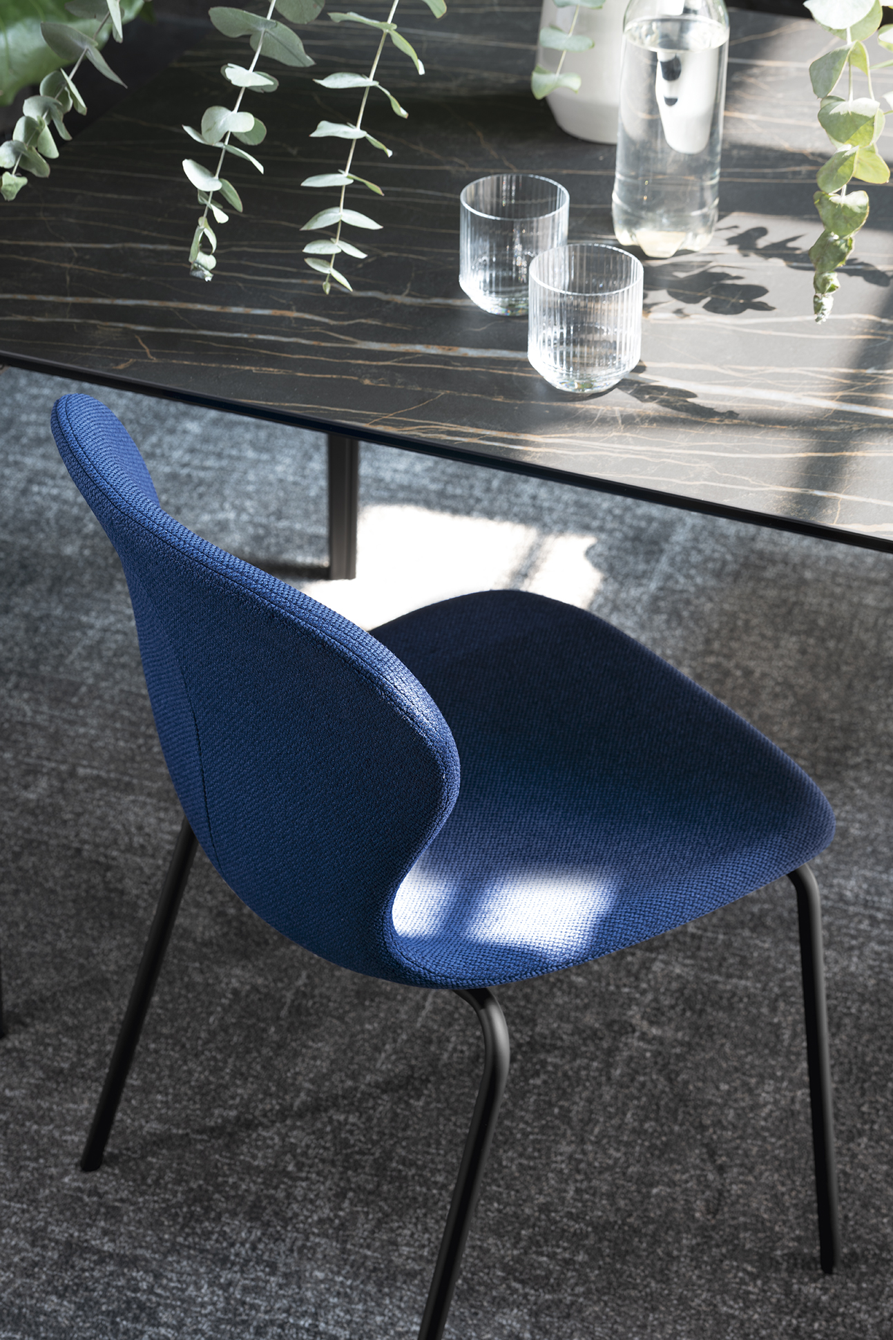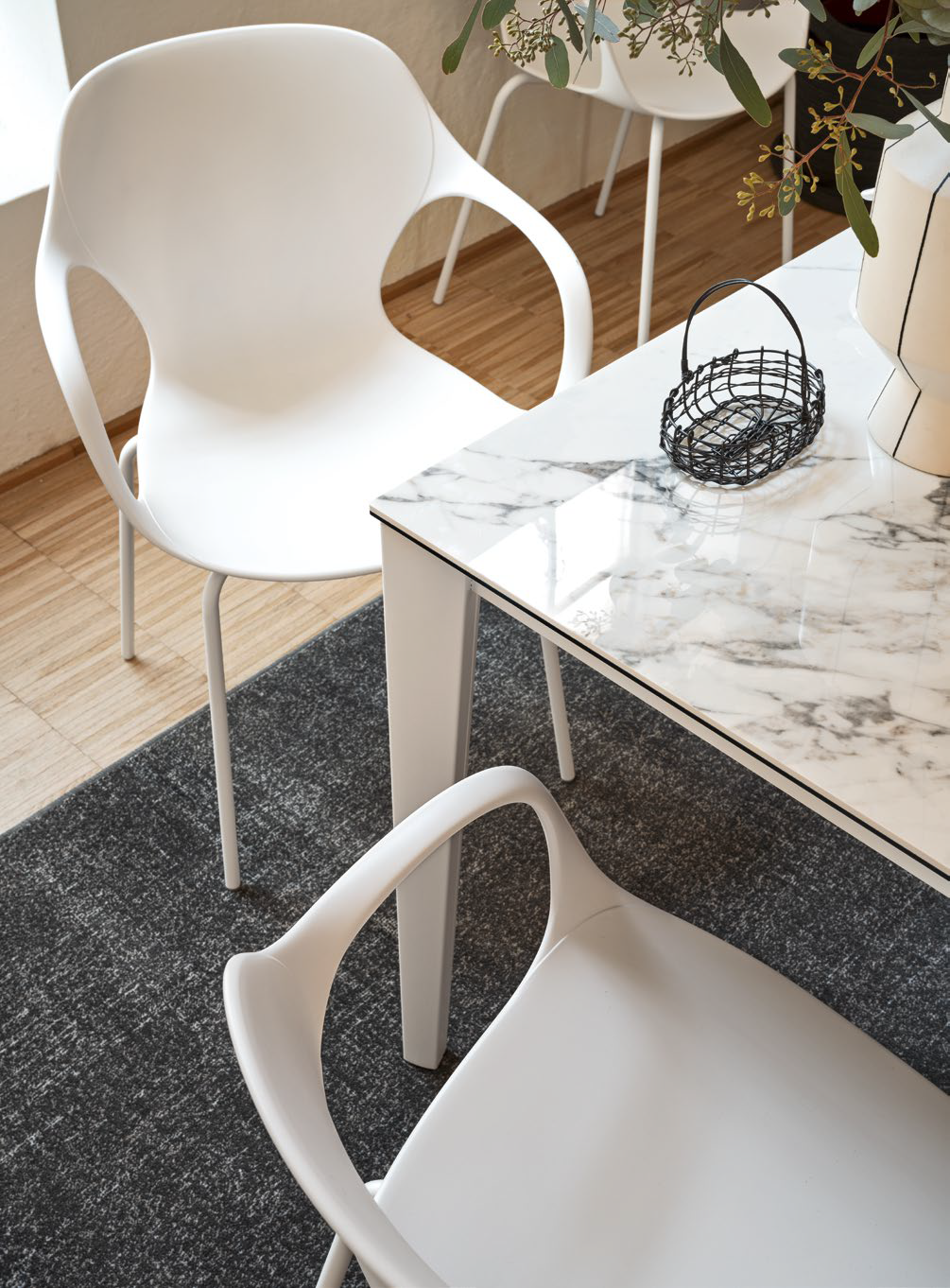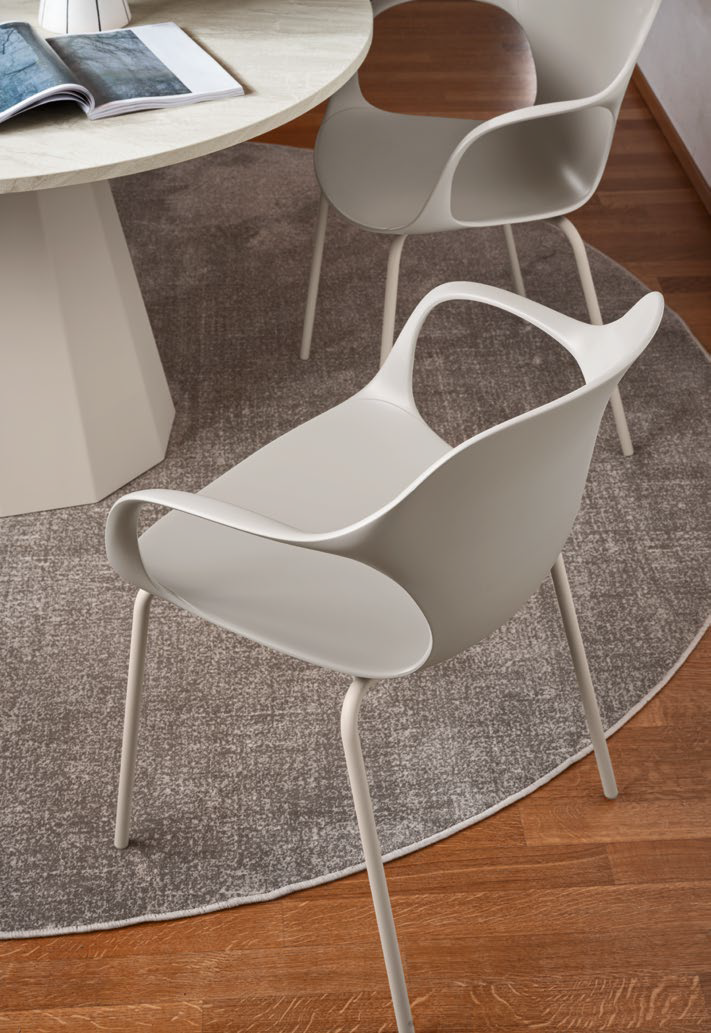 The Ops! chair, designed by the Archivolto studio, is made of recycled polypropylene and, for the first time, also of post-consumer recycled plastic material from the recovery of food packaging.