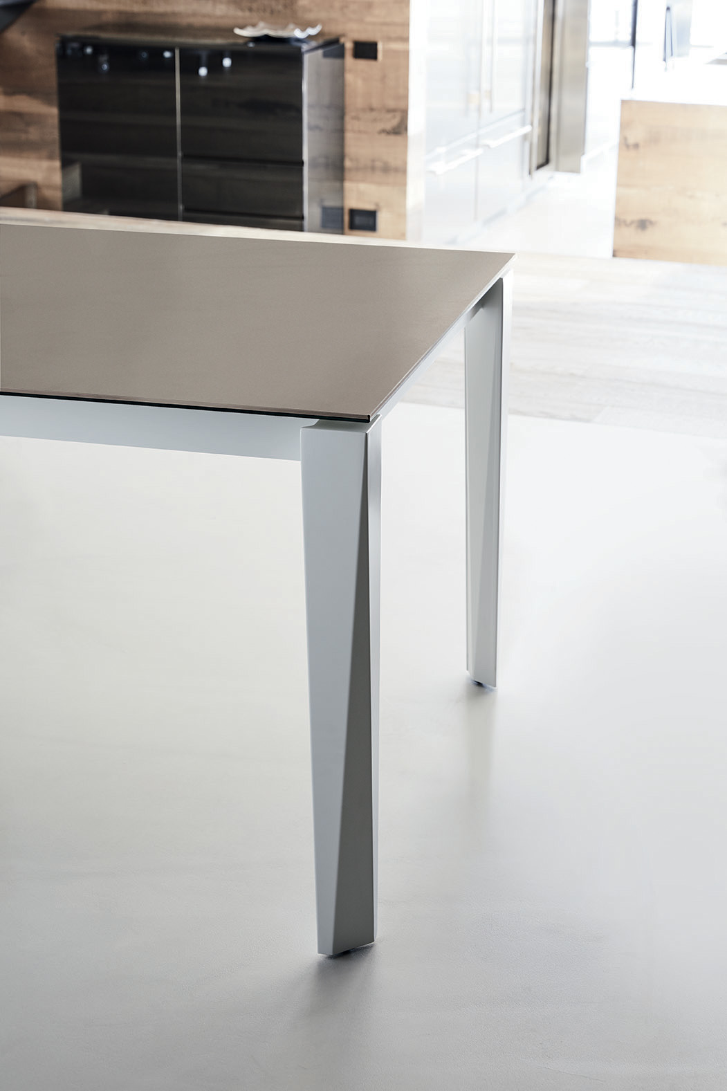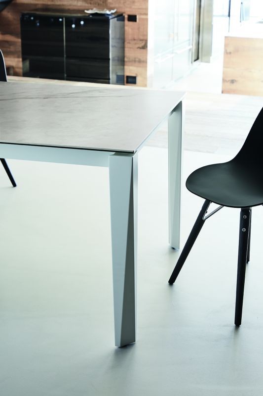 Chef is an extendable table produced by Bontempi, a guarantee of Made in Italy quality. It features a lacquered steel frame available in various finishes, and the top, available in a variety of materials, can be extended to various lengths. The unique shape of the legs lends this table an elegant look, making it suitable for living rooms, dining rooms, and kitchens.
