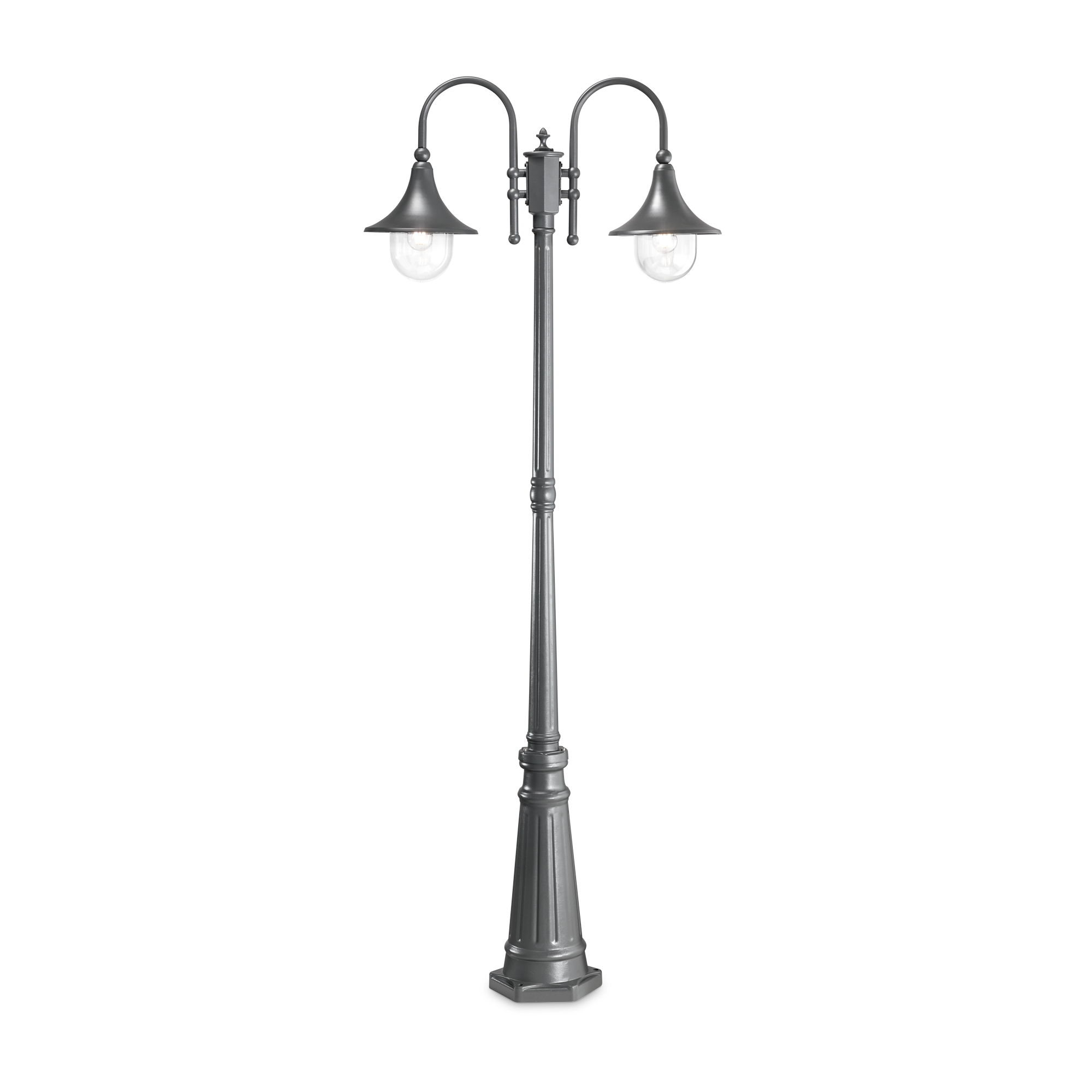 Cima street lamp with light body entirely in die-cast aluminium. Anthracite finish. Transparent acrylic diffuser. Bulbs excluded.