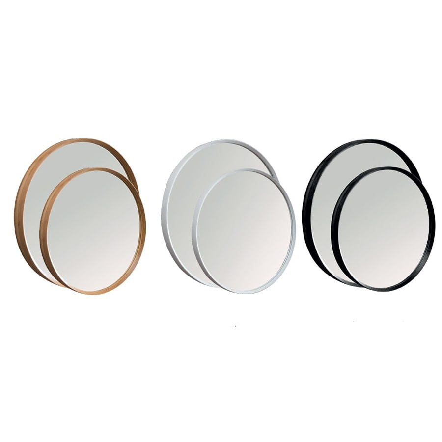 Circular mirror with frame made of wood in the natural, matt white and black variants. Can be hung using the natural cotton nautical rope and the bamboo knob provided.