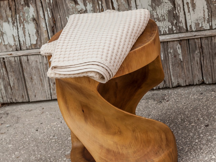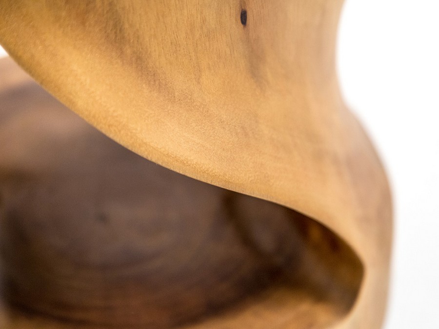 Twister stool by Cipì carved from a single block of solid Suar wood. The workmanship is entirely handcrafted and the wood is sanded and polished by hand. Each piece is unique in grain and tones and any cracks or fissures that may appear over time or with variations in temperature/humidity do not compromise the functionality of the object and cannot be considered defects, but inevitable characteristics of this artifact!