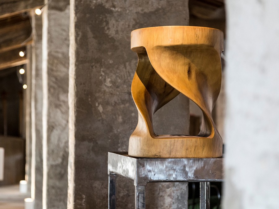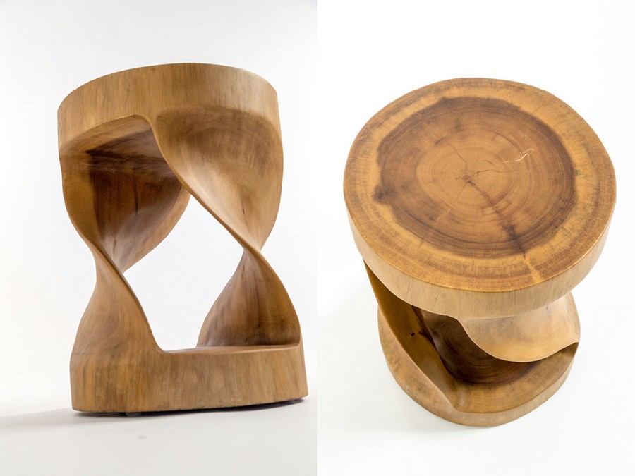 Twister CP501TW stool by Cipì carved from a block of solid Suar wood
