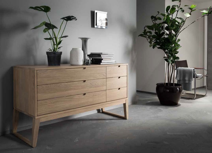 Clover solid wood dresser by Altacorte with 3 or 6 drawers. Dresser with a sophisticated, never banal design made entirely of brushed solid oak, artfully finished by expert craftsmen. Details make the difference.