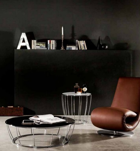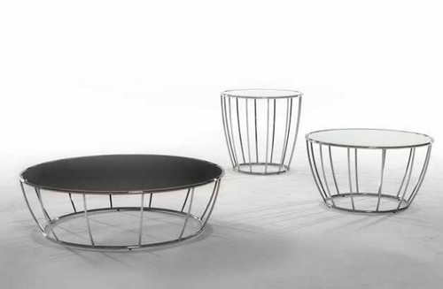 Hamburg coffee table by Tonin Casa with metal frame and tempered glass top. The Hamburg series consists of two small tables and a side table that play on the roundness of the lines, lightened by the spaces left free in the structure. the chromed metal tubes rise to support the black, white or beige tempered glass tops.