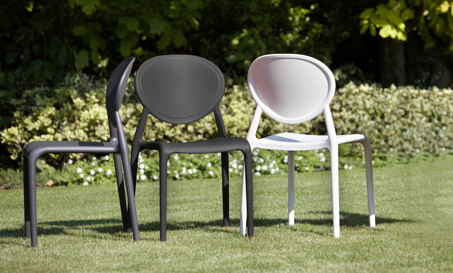 Fiberglass-reinforced technopolymer frame. Injection-molded using the air molding technique. Available in various colors. Comfortable and stackable, they are particularly suitable for outdoor use. For indoor/outdoor use.
