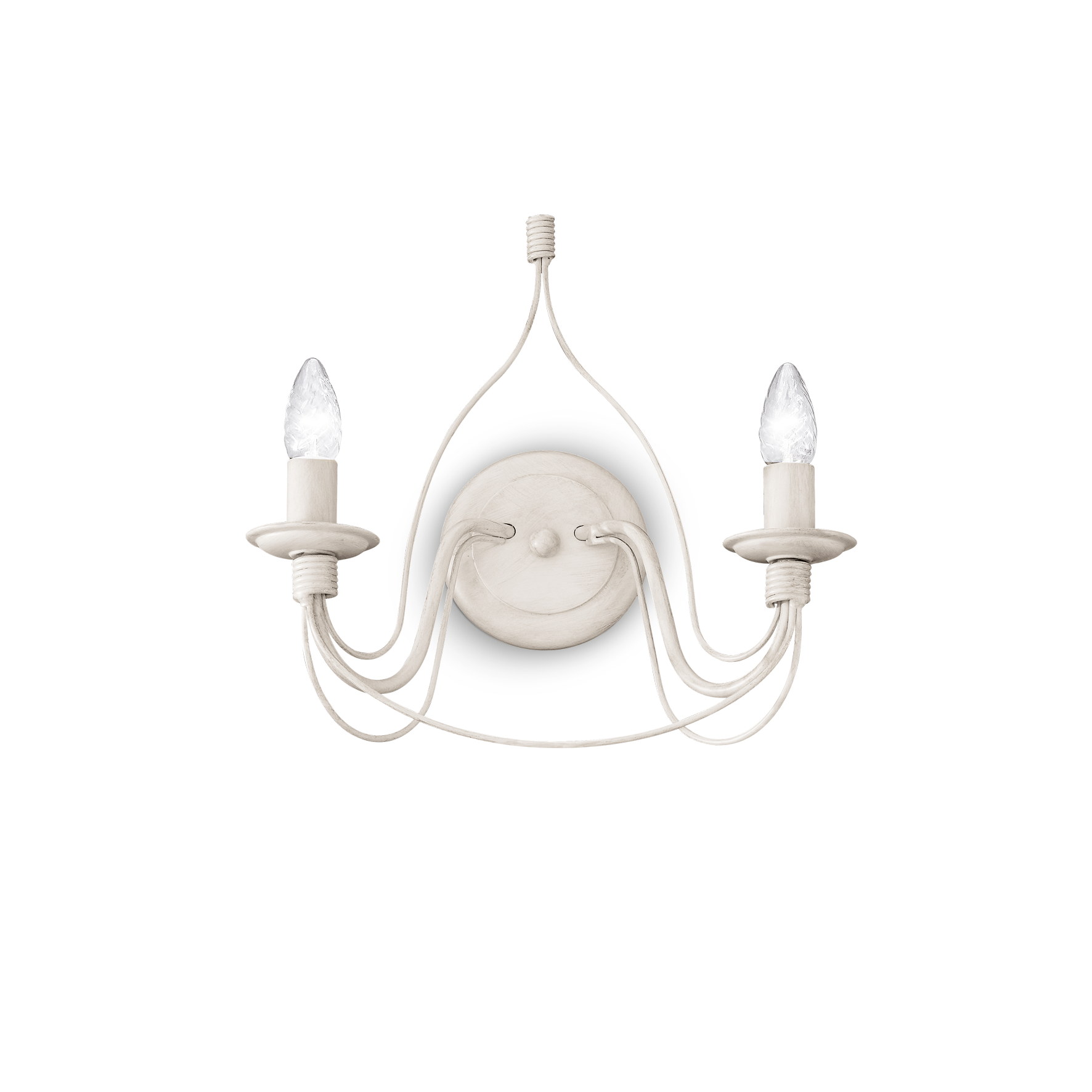 Corte ap2 antique white wall light by Ideal Lux with a completely handcrafted metal frame. Hand painted finish with antiqued effect. White version. Bulbs excluded.