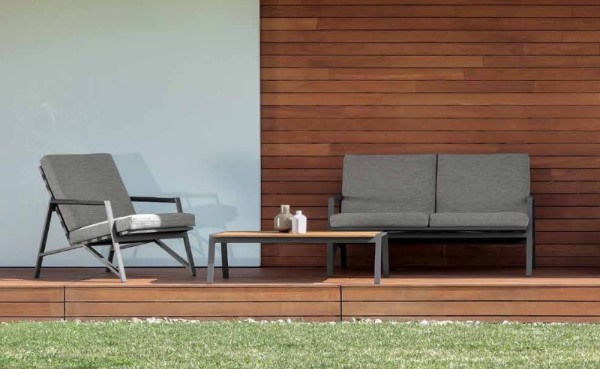 The outdoor living armchair from the Cottage collection evokes the atmosphere of the Wild West, where generously proportioned seats with high backs populated the porches of farms and ranches.