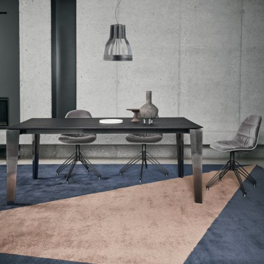 Cruz by Bontempi is an extendable table, with top and structure available in different finishes. Its elegant line makes this table unique and exclusive and furnishes with great style the environment it occupies.