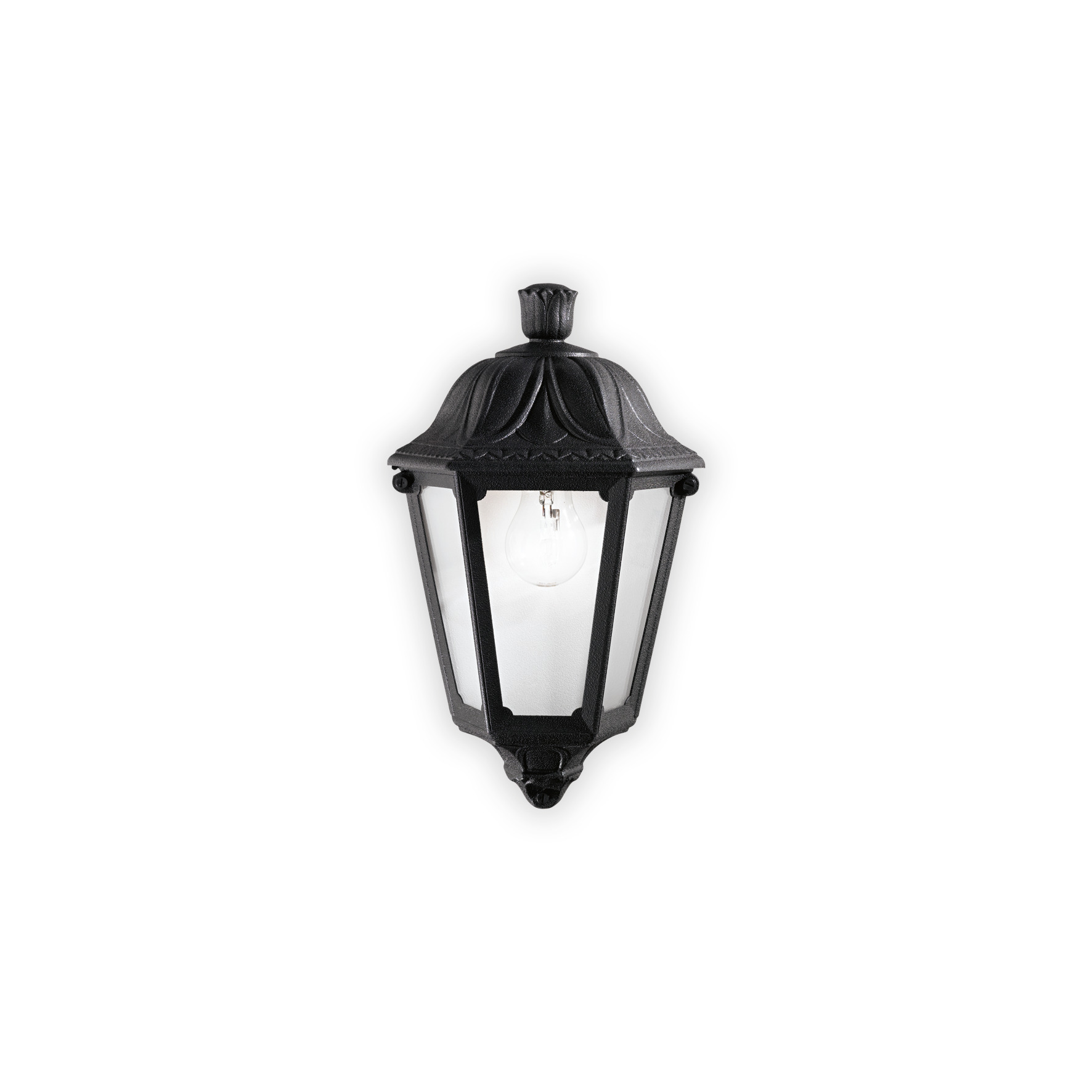 DAFNE AP1 Small black outdoor wall light by Ideal Lux with high-performance resin light body: resistant to corrosion, colors stabilized by UV treatment, resistant to temperature changes from -60° C to + 90° C. Diffuser in anti-yellowing methacrylate. Bulb excluded.