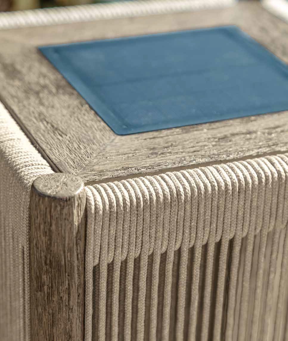 The small Dolcevita lamp is an accessory that combines functionality and elegant design to illuminate outdoor spaces with style. Crafted from teak wood, this lamp is wrapped in woven ropes that add a touch of refinement and modernity.