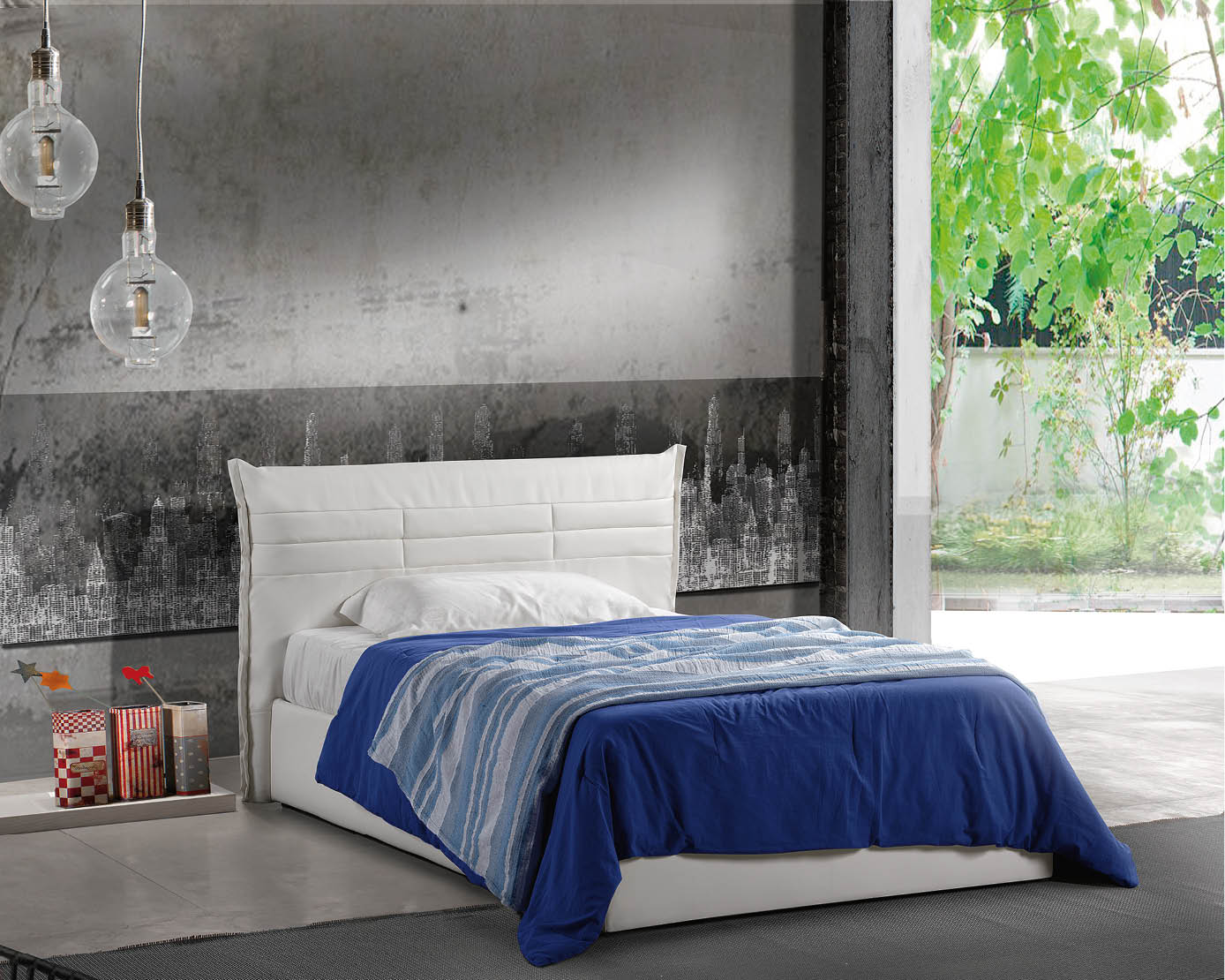 The young and lively choice for those who want an original and at the same time welcoming product. Its soft headboard invites you to rest and features original stitching that recalls an urban charm.