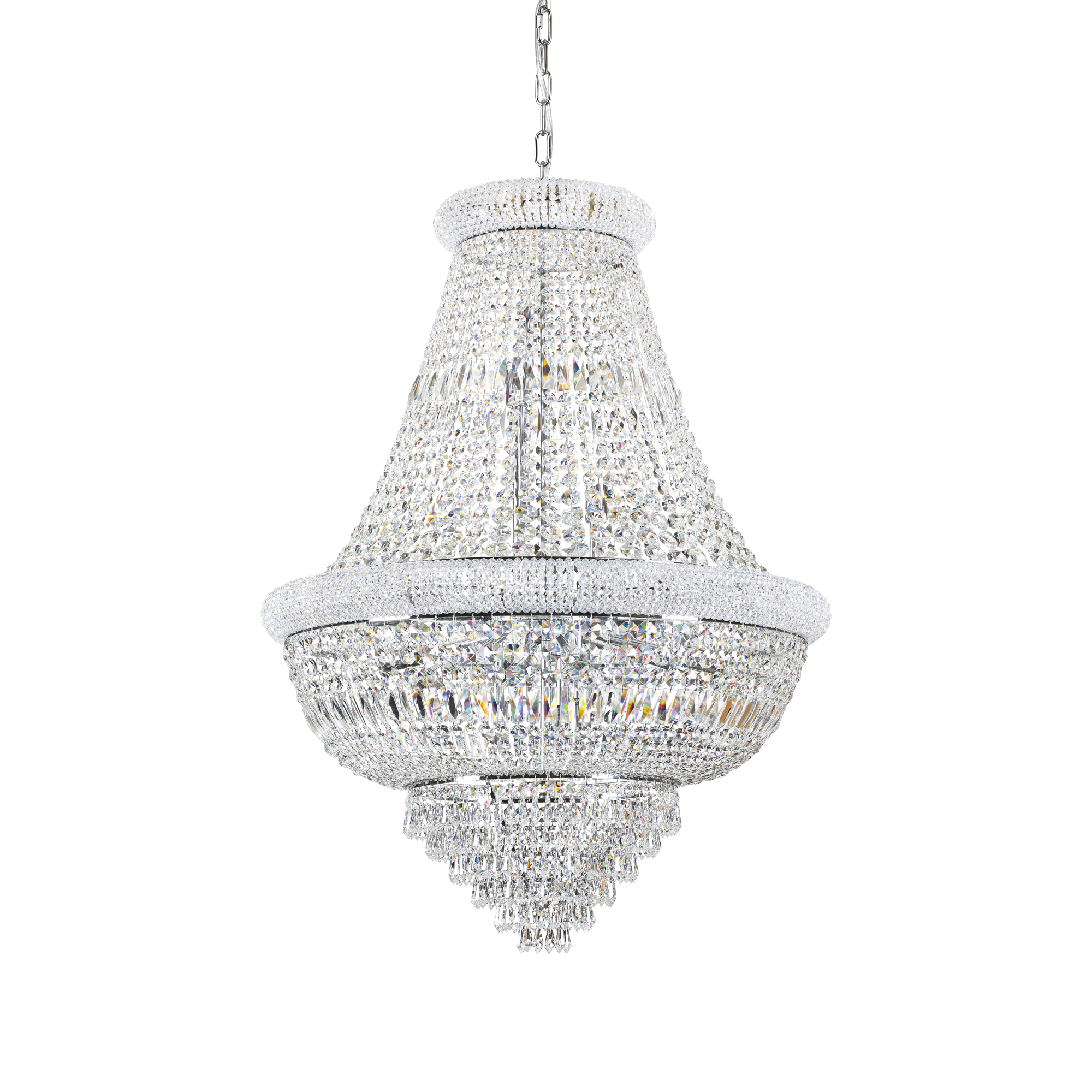 DUBAI SP24 chrome pendant lamp by Ideal Lux with chrome-finish metal frame. Decorative elements with pearls, octagons and prisms in transparent cut crystal. Bulbs not included.