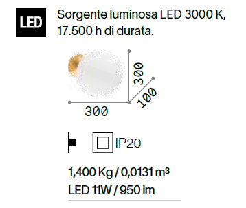 ECLISSI AP SMALL wall lamp by Ideal Lux with metal frame finished with powder paint and gold leaf. The variable positioning of the upper diffuser allows for a whiter or more golden light refraction. LED light source included.
