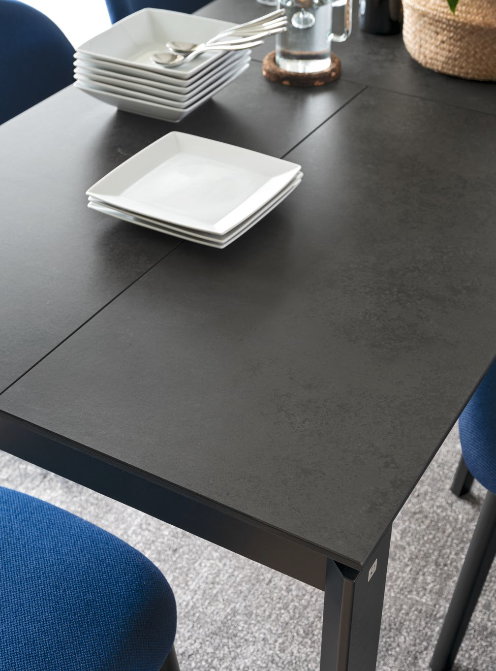 Eminence Fast CB4788-R 160 table by Connubia is a table with a ceramic top. It has a lateral extension in the same finish as the top, while the legs are always at the perimeter to ensure comfort for all diners. Its functionality and elegance make it a unique piece of furniture for the dining area.