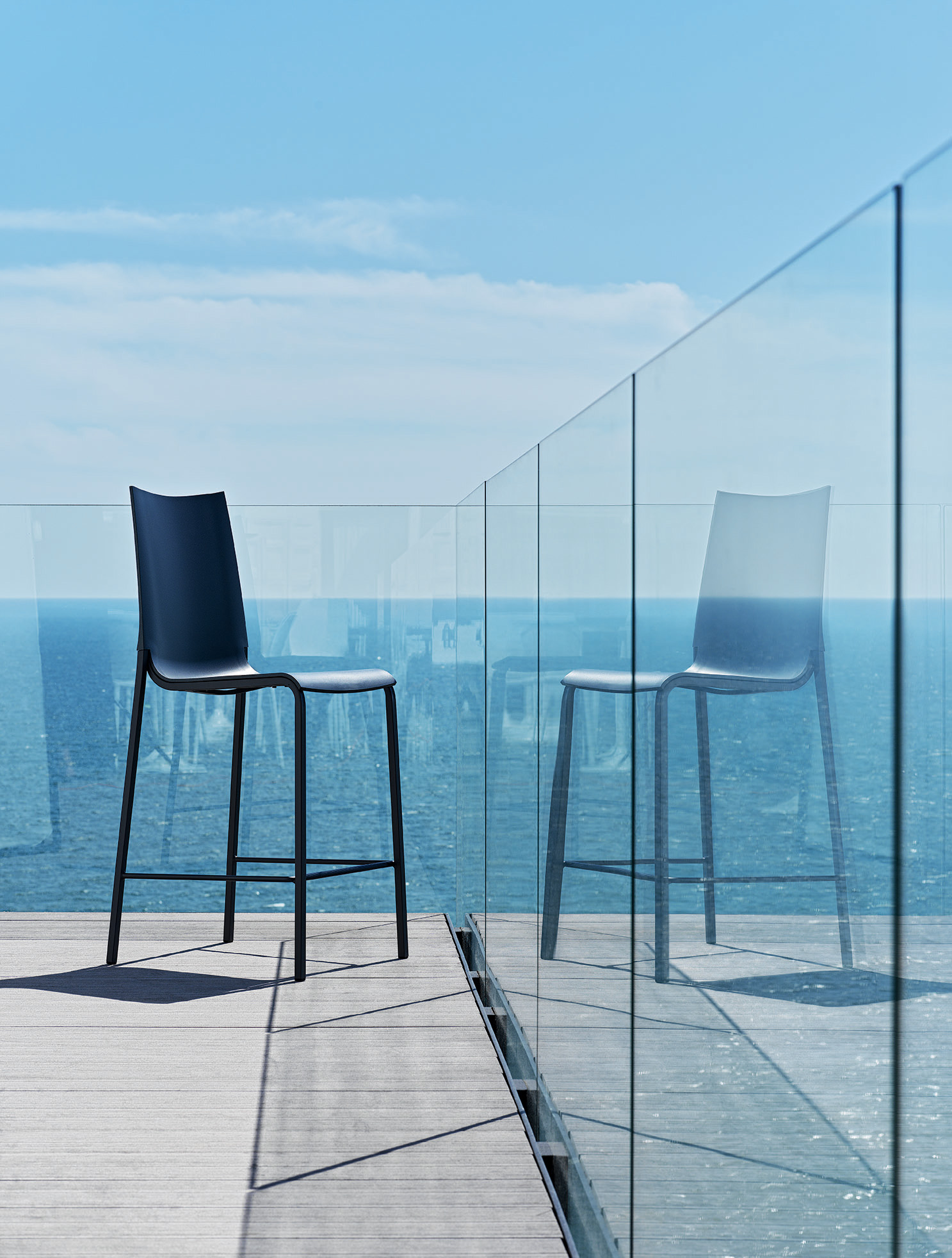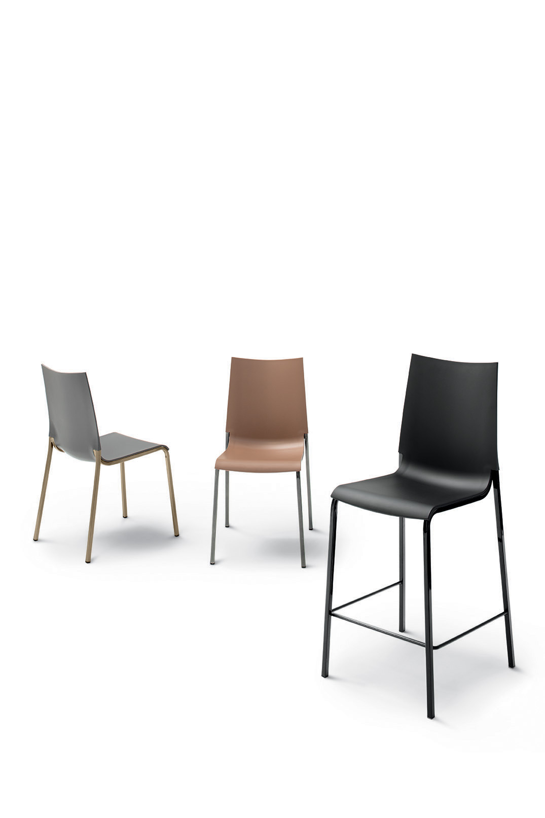 The Eva stool has a lacquered steel frame in various finishes, the very comfortable polypropylene shell in various colors. The simple and modern design makes the Eva stool refined and elegant, ideal to combine with a peninsula in the kitchen or to use in modern cafes. The Eva stool is also suitable for outdoor use.