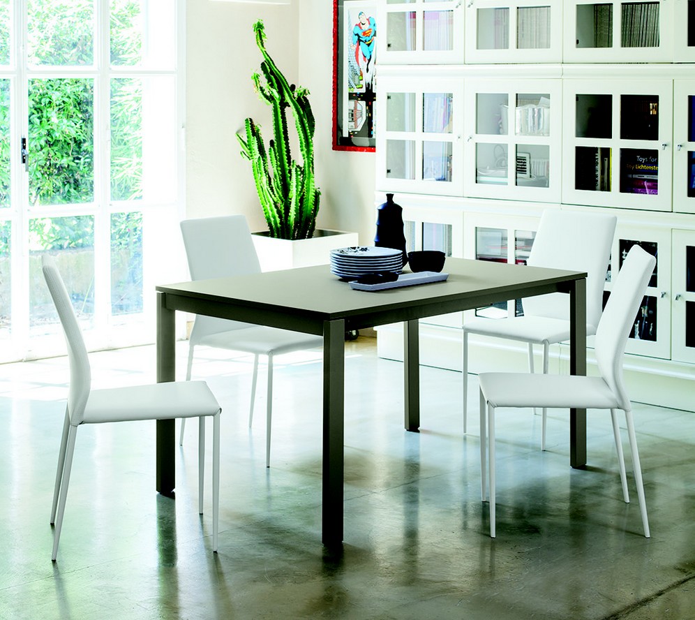 Reid is equipped with three extensions that extend the table from 140 cm to 290 cm, with an extension mechanism in aluminum lacquered in the same color as the structure. The top is available in melamine, Materico melamine, Fenix laminate, lacquered wood, glass or SuperCeramica, the structure is in lacquered steel in different finishes. Characterized by its simple and clean line, it adapts to any type of domestic environment.