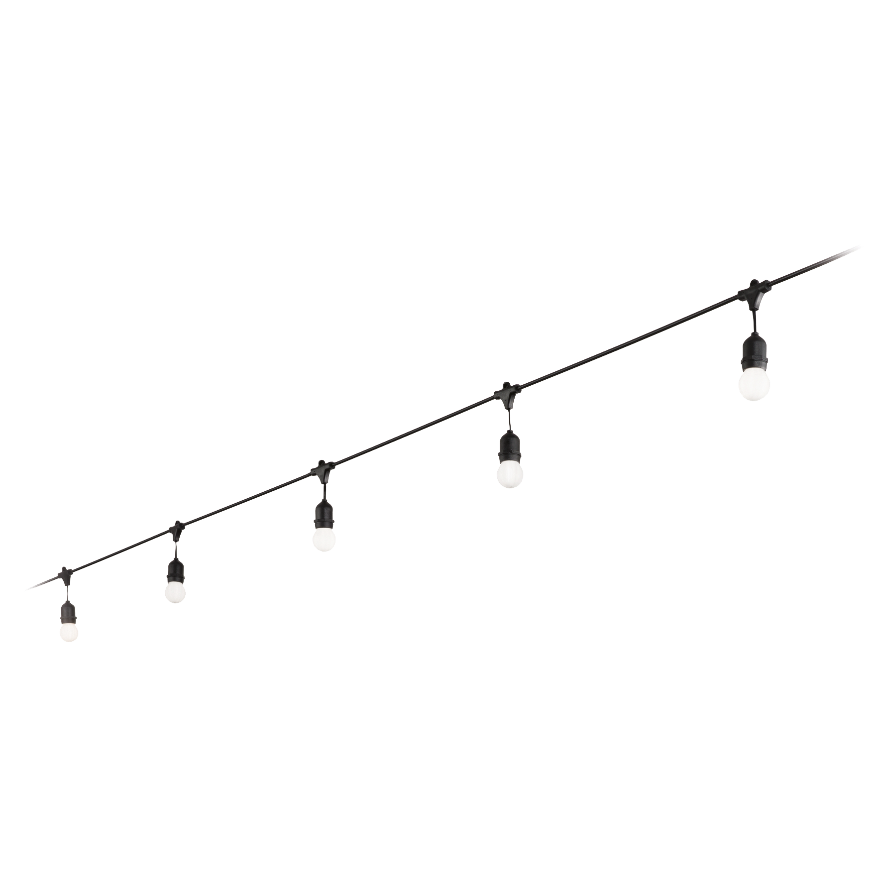 Cable with lamp holder and black plastic anchoring eyelets. Comes with an outdoor plug. Bulbs not included.