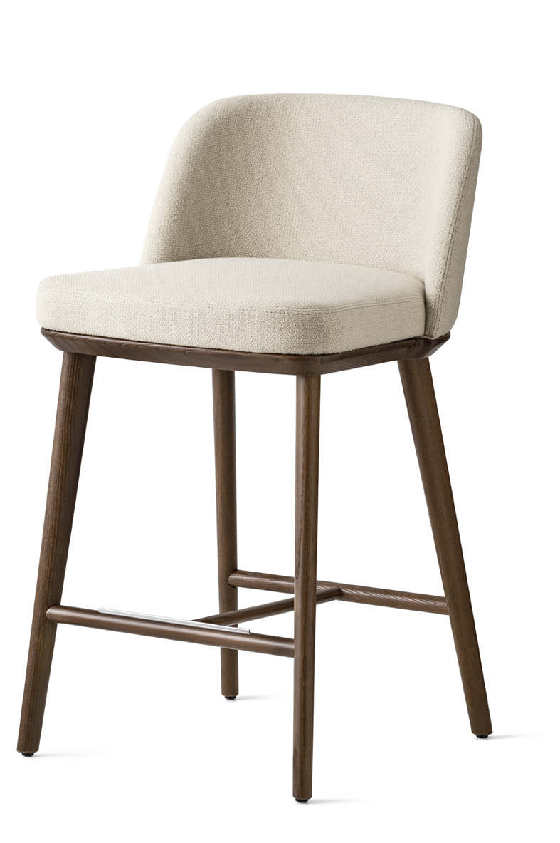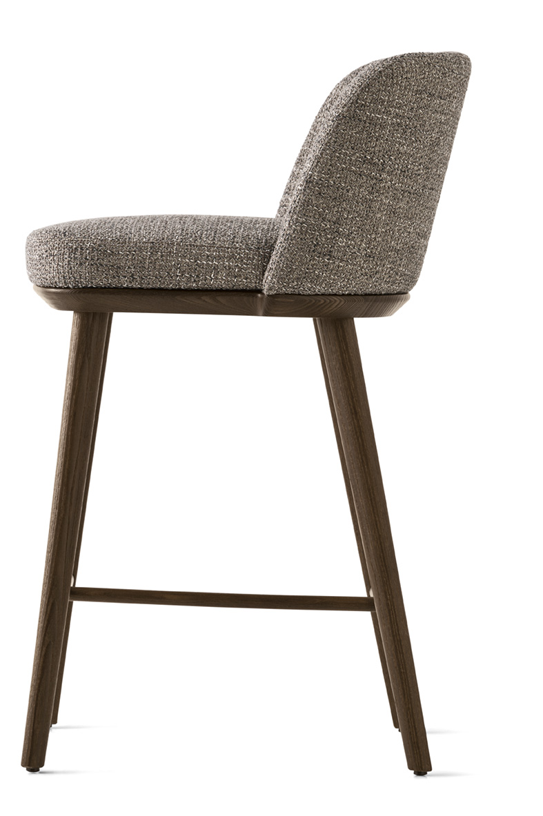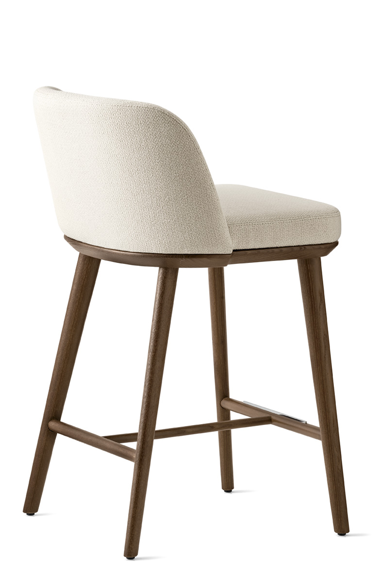 The FOYER seating family gives a sense of comfort and relaxation to those who abandon themselves to it. The stool is made of ash wood and is characterized by the comfort of the fixed padded and upholstered backrest. A linear design that adapts to any type of environment.