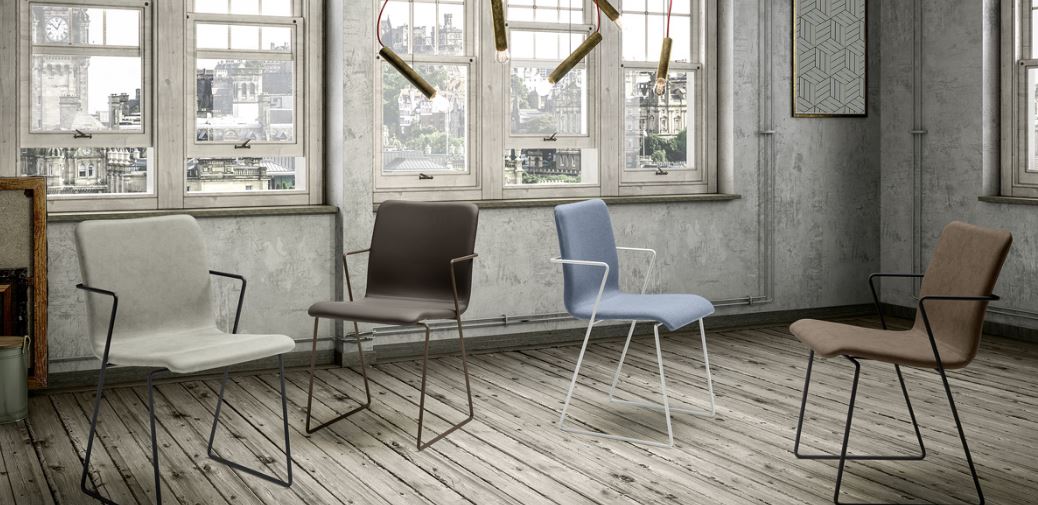 Fluid / A chair by Zamagna with metal structure and plywood seat covered in various materials and finishes. A simple chair but with a particular design that makes it stand out from the crowd. Comfortable and elegant, it will be perfect for decorating your rooms.