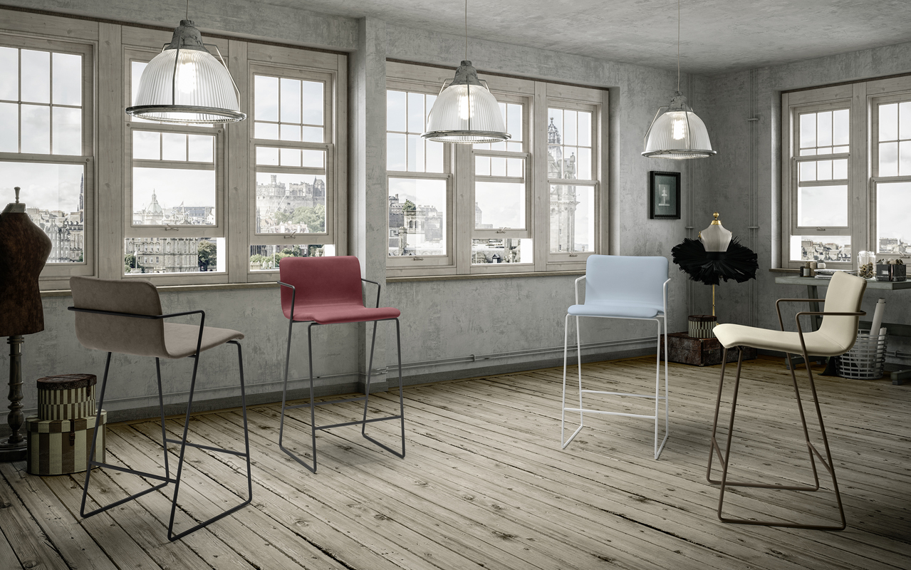 Fluid / C stool by Zamagna with metal structure and plywood seat covered in various materials and finishes. A simple stool but with a particular design that makes it stand out from the crowd. Comfortable and elegant, it will be perfect for decorating your rooms.