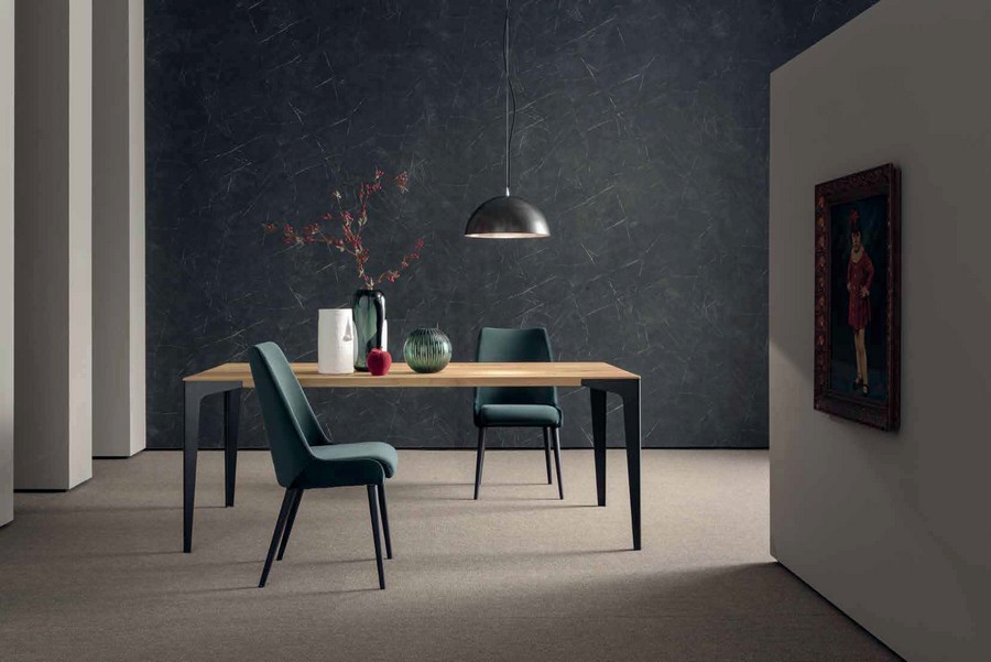Fly fixed table by Altacorte with steel perimeter legs in various finishes of your choice. 4 cm thick oak top available in various finishes.