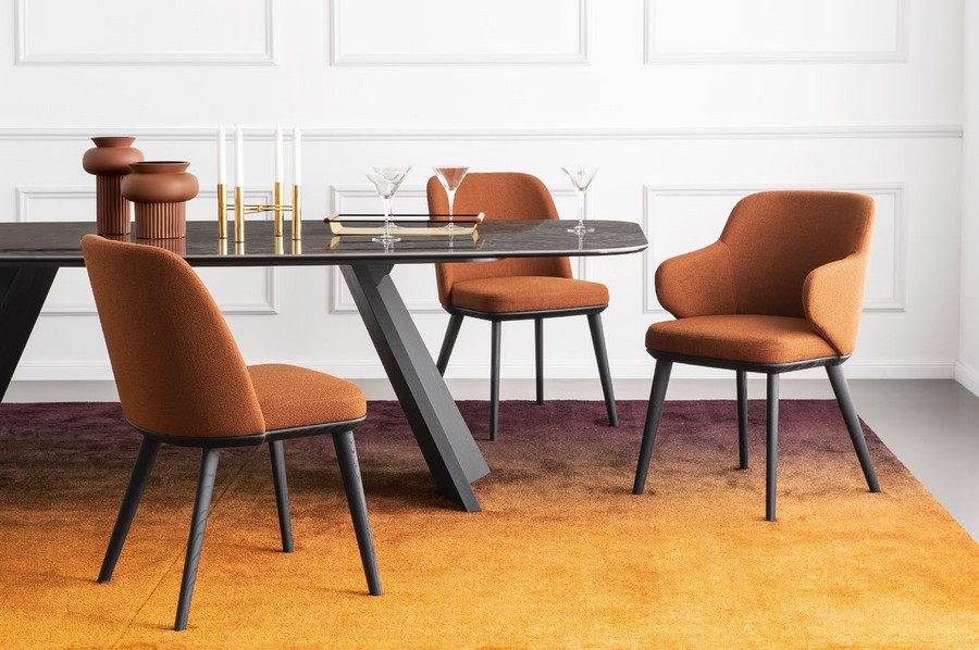 The new FOYER upholstered chair gives a sense of comfort and relaxation to those who abandon themselves to it.