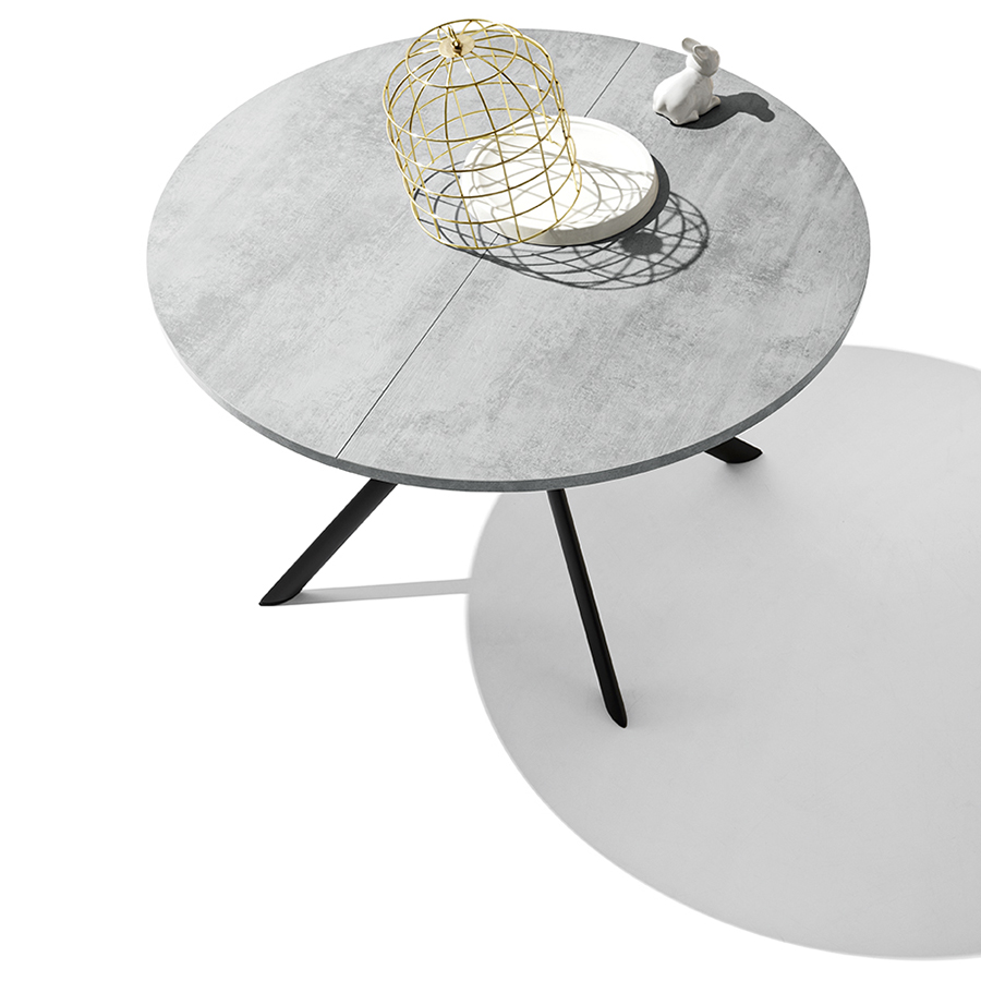 Giove extendable table by Connubia, metal base with round top in wood, wood-ceramic or wood-glass.