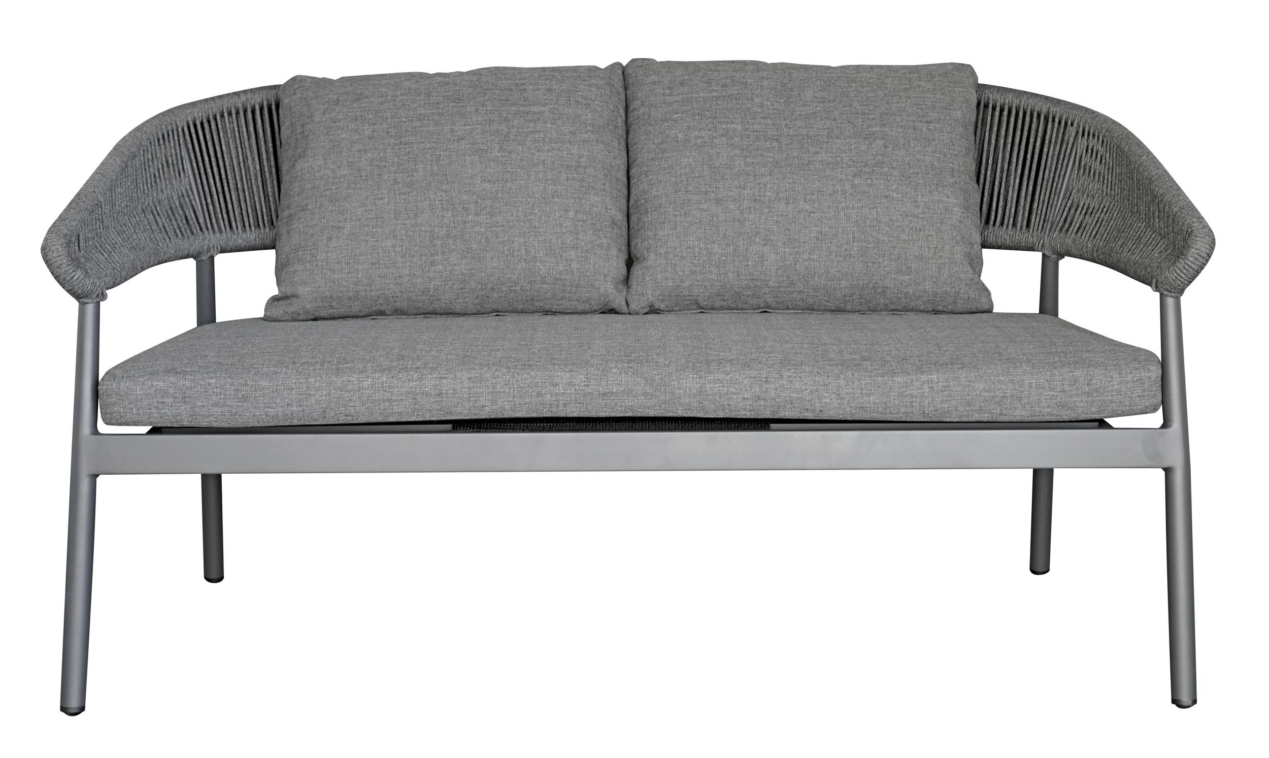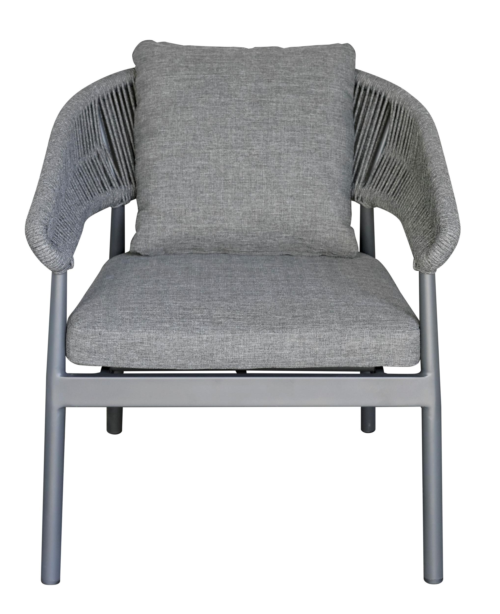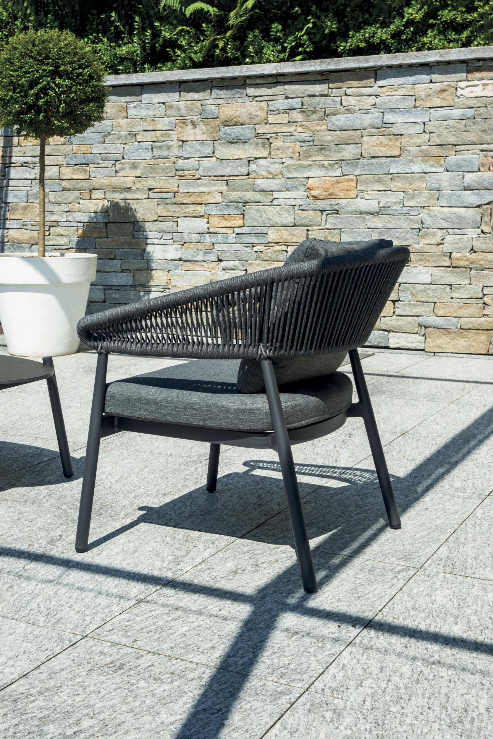 Anthracite aluminum frame, anthracite rope BACKREST, light gray removable cushions and pillows.