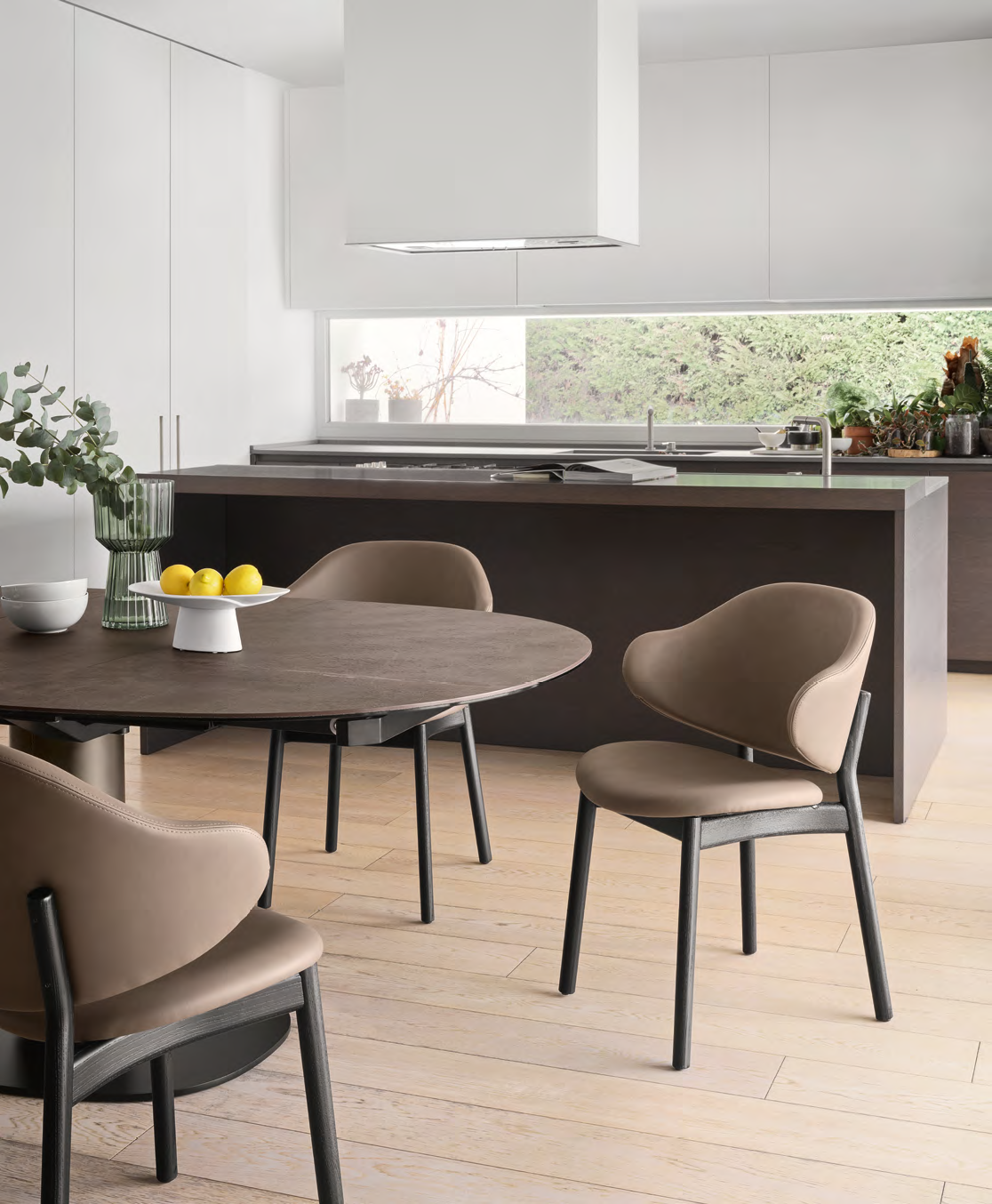 Holly is the seat that reinterprets the styles of 1950s seating through soft and welcoming shapes that are perfectly compatible with a warm and expressive material such as wood.