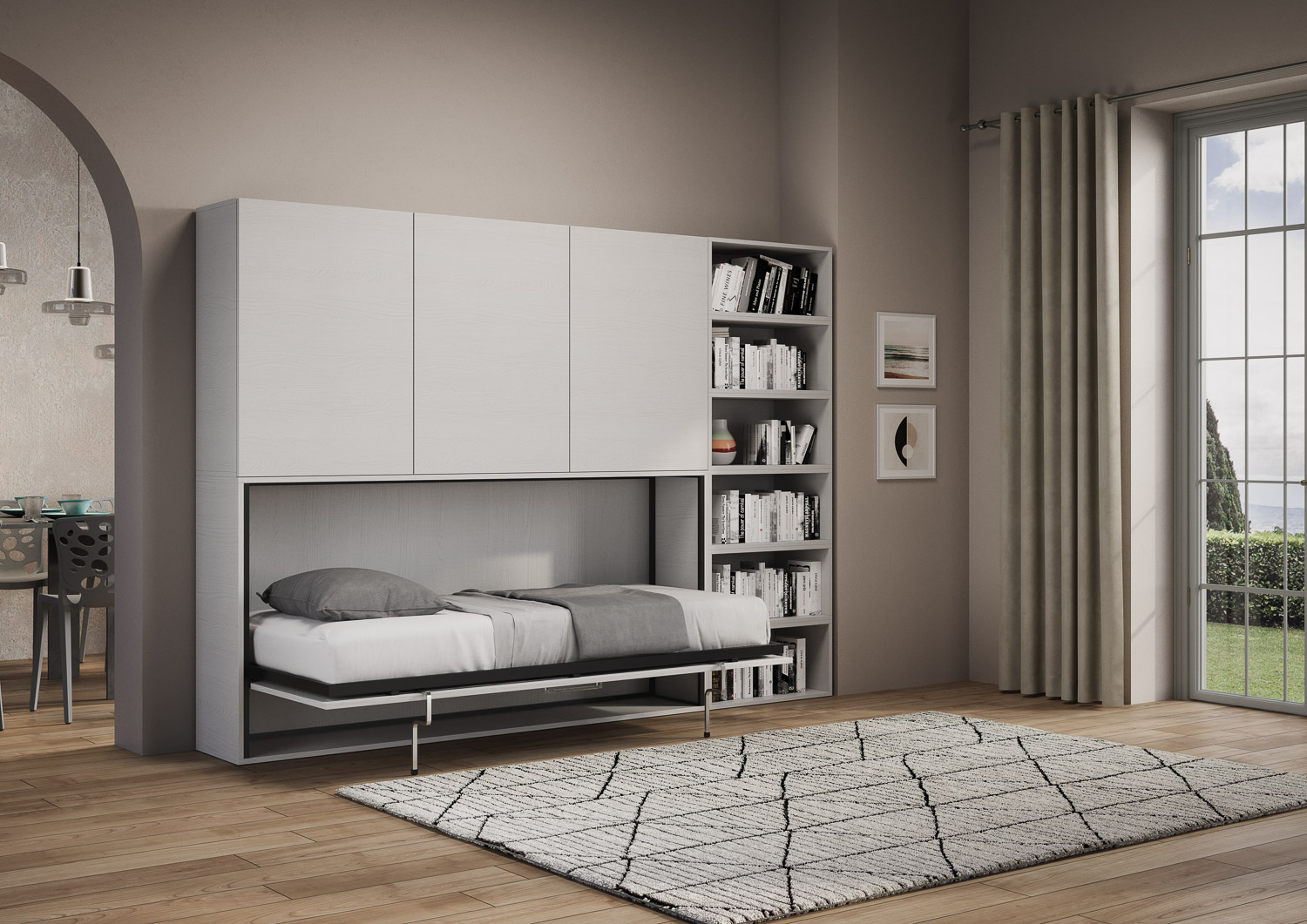 Composizione C con materasso W.266,5 D.39,2 H.226,7 cm (when opened D.106 cm)