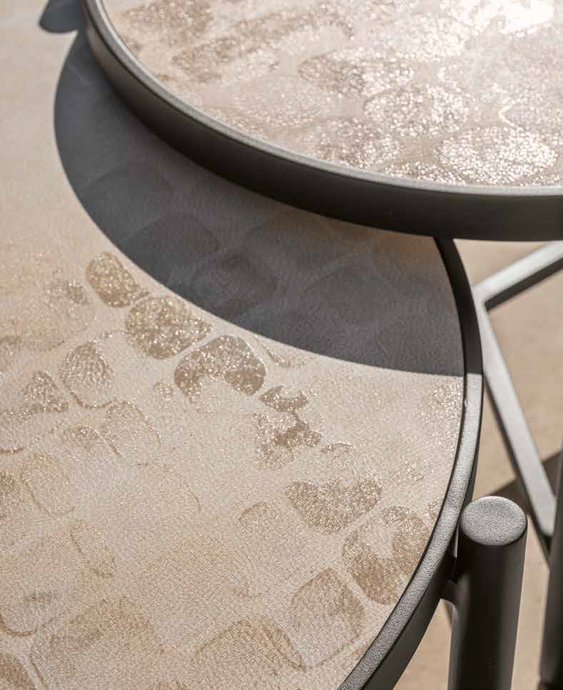 The D58 Coffee Table interprets the lightness and elegance of the collection in a compact and harmonious form. The painted aluminum frame supports a circular top with balanced proportions, where the purity of the design meets the strength of the materials.