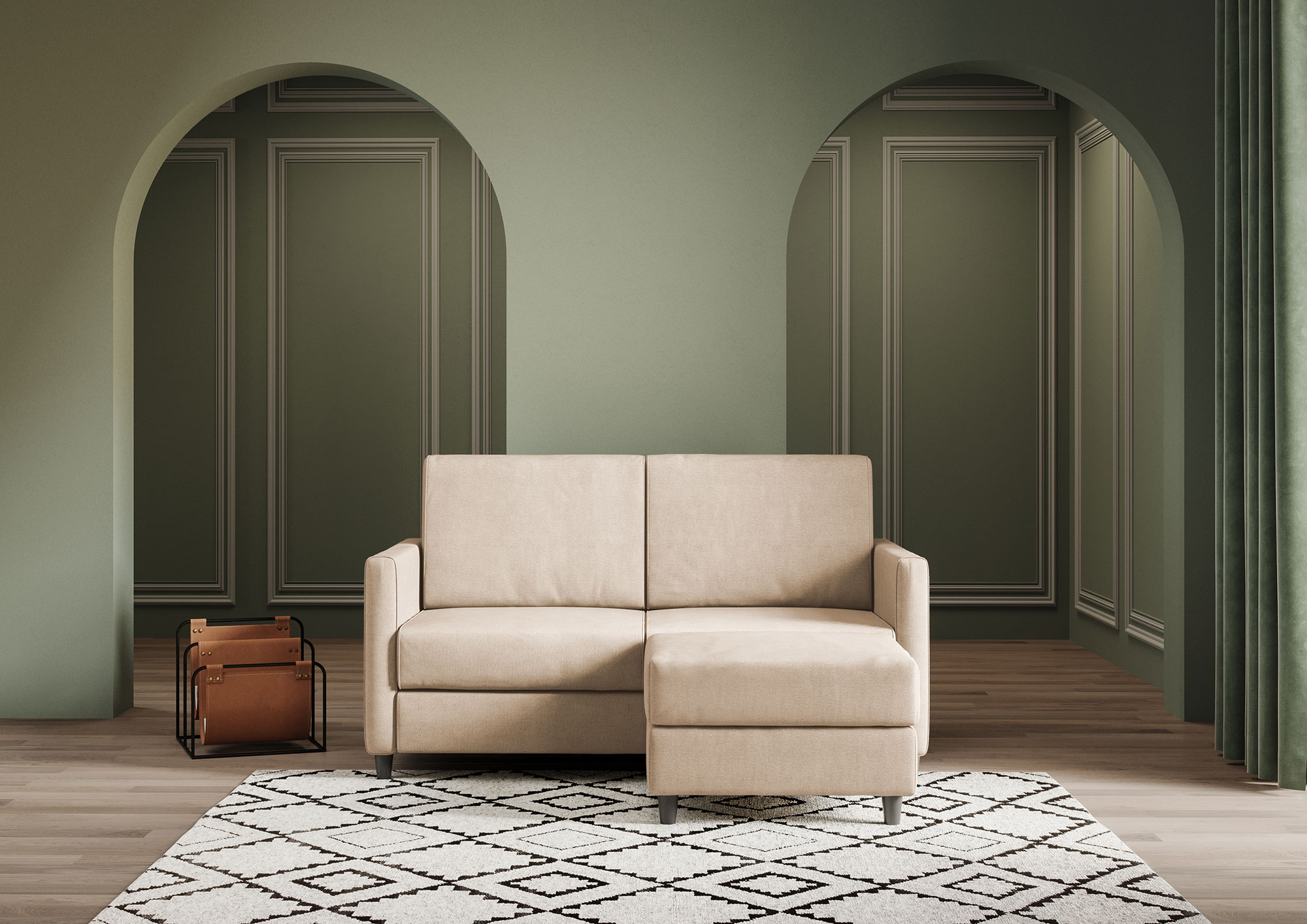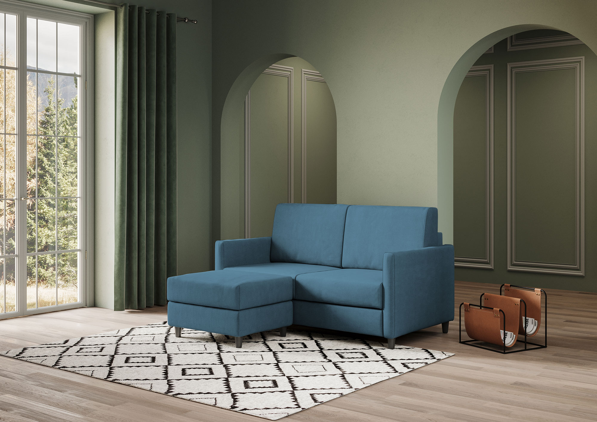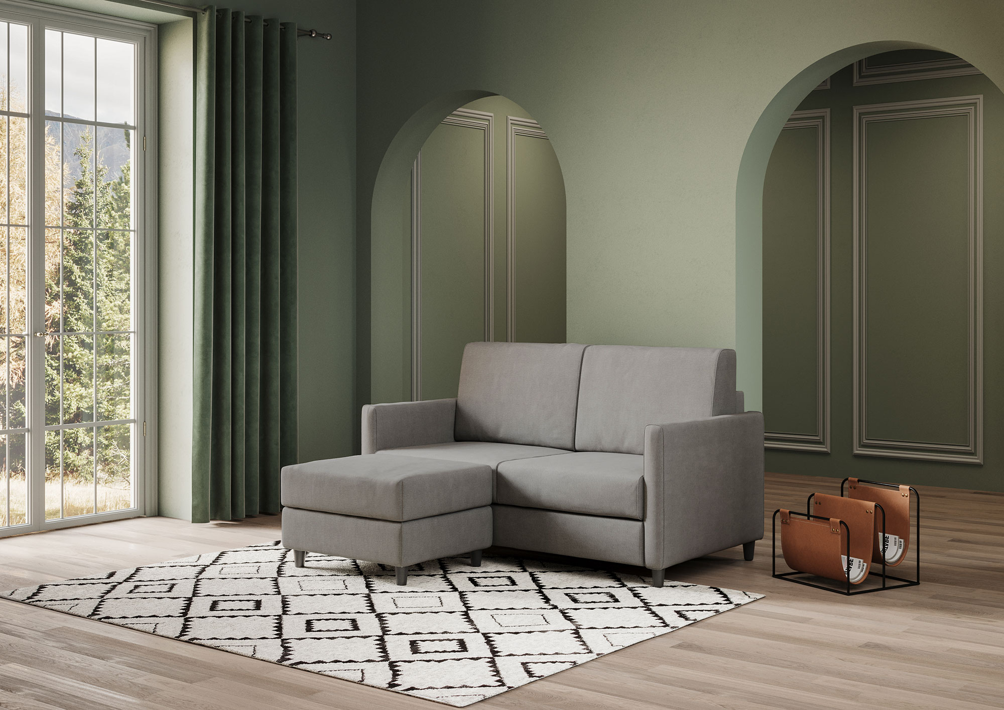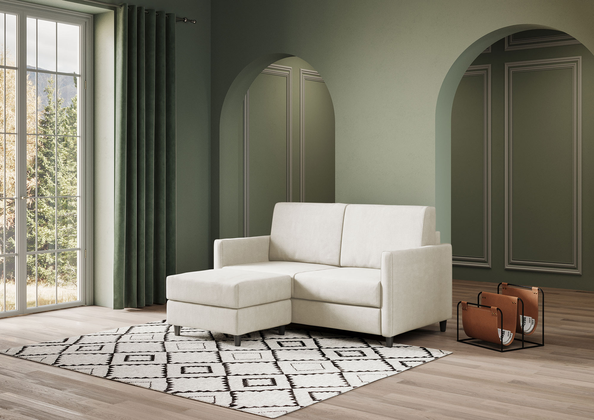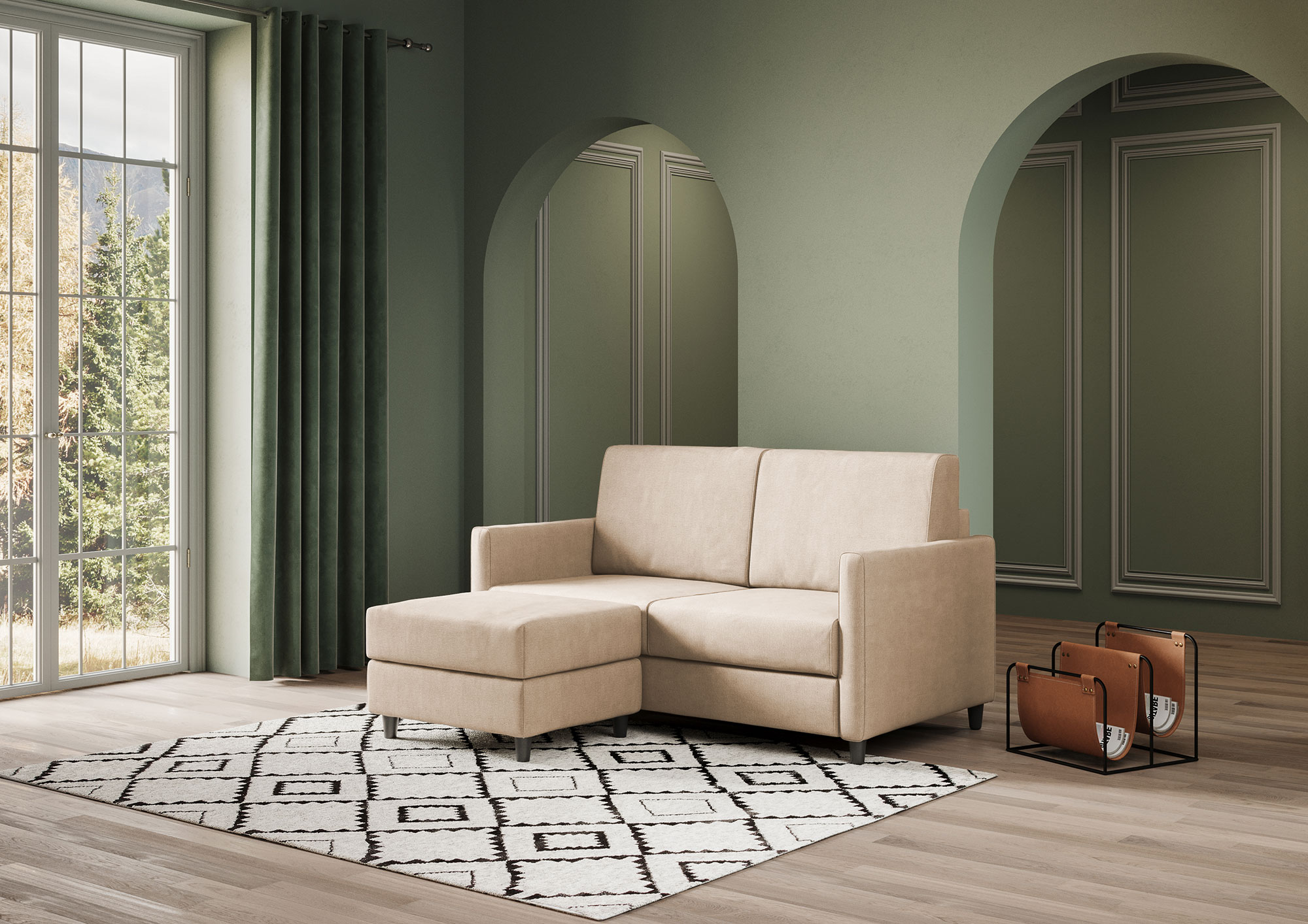Our 2 seater sofa with ottoman is the ideal addition to your living room. With its elegant and comfortable design, it is designed to bring maximum convenience and style to your home. The seat in contact with the backrest ensures that the weight is evenly distributed on the cushion, offering exceptional comfort thanks also to its width of 70cm. Made with high-quality materials, including a sturdy frame and high-density foam padding, it ensures durability and long-term comfort. The pouf can be positioned freely and is versatile. It can be used as a footstool or as an additional seat when you have guests, offering greater flexibility and hospitality. Furthermore, the pouf has the same covering as the sofa, creating perfect visual harmony. You can easily and discreetly fix it in the desired position, whether on the right or left, according to your needs and available space. Alternatively, you can quickly move it to wherever you want. The elegant and modern design of the sofa adapts to any environment and decor, thanks to its clean lines and minimalist look. The colors of the coverings are versatile and easy to match. The Karay 2-seater sofa with ottoman is the perfect choice for those seeking maximum comfort and style. Add this piece to your home and enjoy moments of relaxation and conviviality with your family and friends.