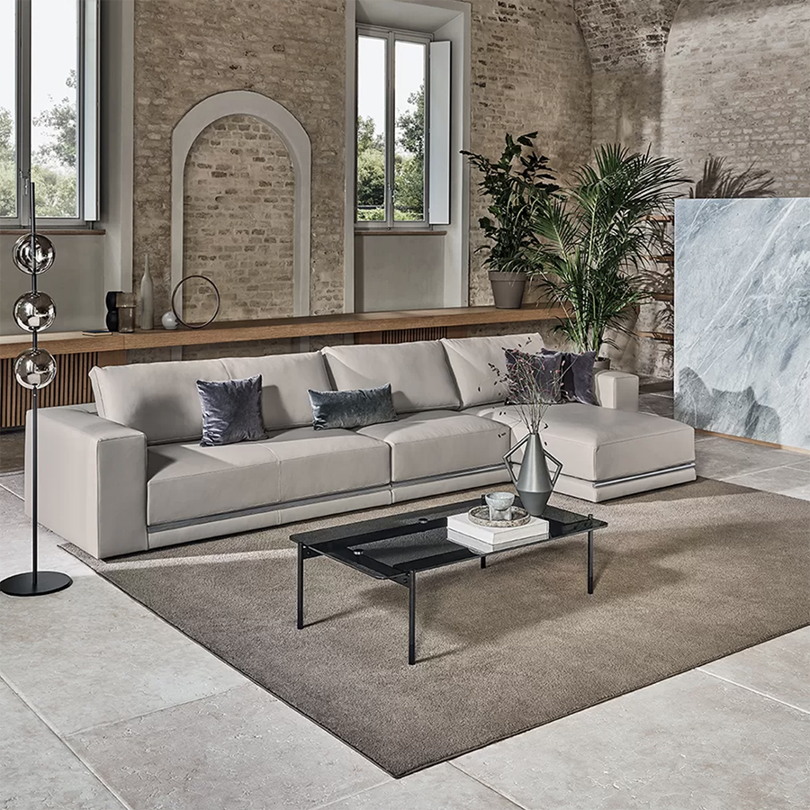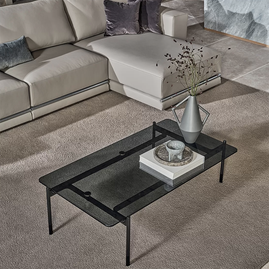 Karol coffee table by Bontempi with steel frame and glass or wooden top. Available in various sizes.