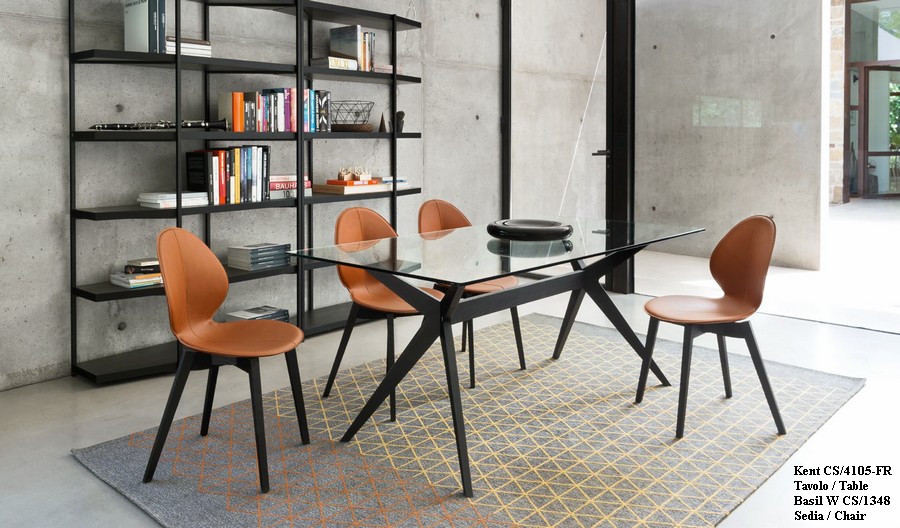 KENT CS4105-FR table by Calligaris, Kent is a fixed table that recalls the design of the Sixties and Seventies. The wooden base, with its lively and dynamic lines, supports a thin glass top, round or rectangular. A combination that enhances the essentiality of a table that does not impose its presence, but on the contrary lightens the dining area.