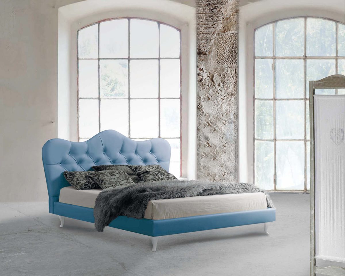Double bed Bacio by Lettissimi classic precious and important a timeless classic dedicated to those who never give up style. Available in two versions: with bed frame H. 14, with bed frame H. 22. Wide range of choice in fabrics and eco-leather for the coverings and possibility of the version with container with two different types of opening: standard or patented double lift.