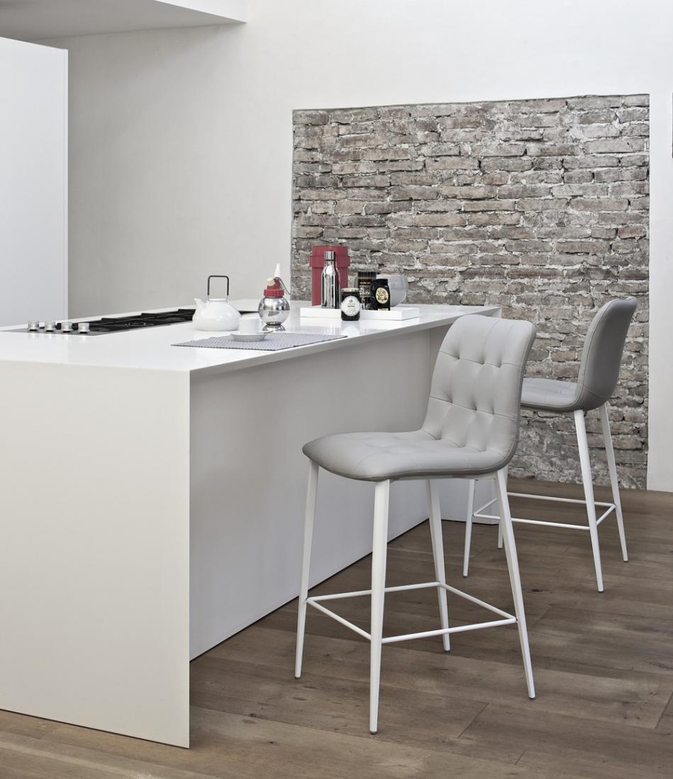 Available adjustable in height or in two seat heights: low (recommended for kitchen peninsulas) or high (recommended for a bar counter height).
