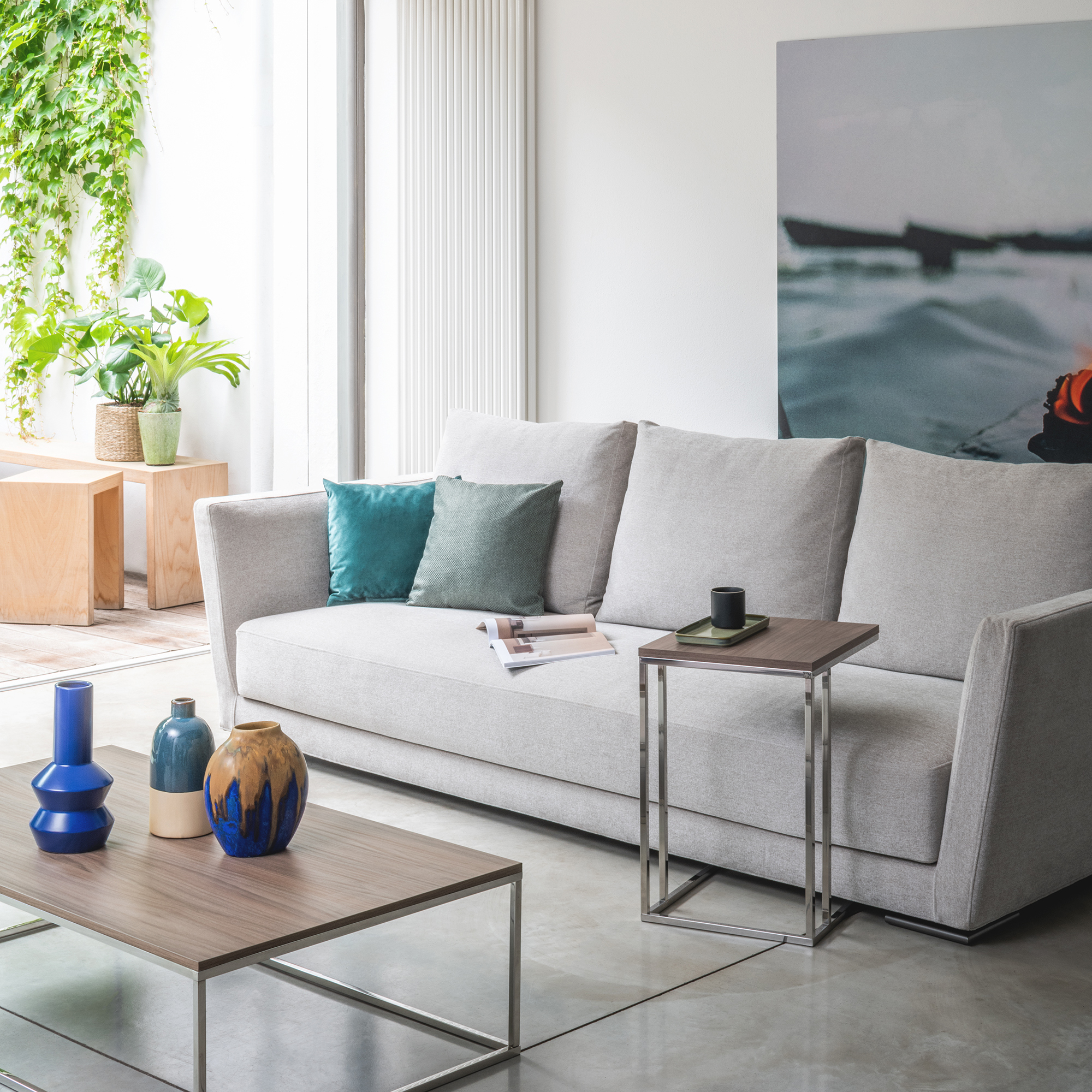 Pezzani's Lamina multifunctional coffee table: the square or rectangular coffee table with a laminated wood top and stainless steel frame that decorates your living room and home, available in multiple colors.
