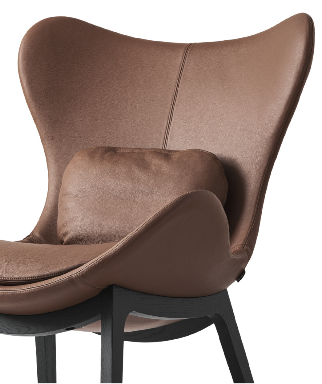 The soft seat and lumbar cushion rests on the enveloping body, made of cold-foamed polyurethane. To make it even more comfortable, this version with metal base is equipped with a tilting and swivel mechanism.