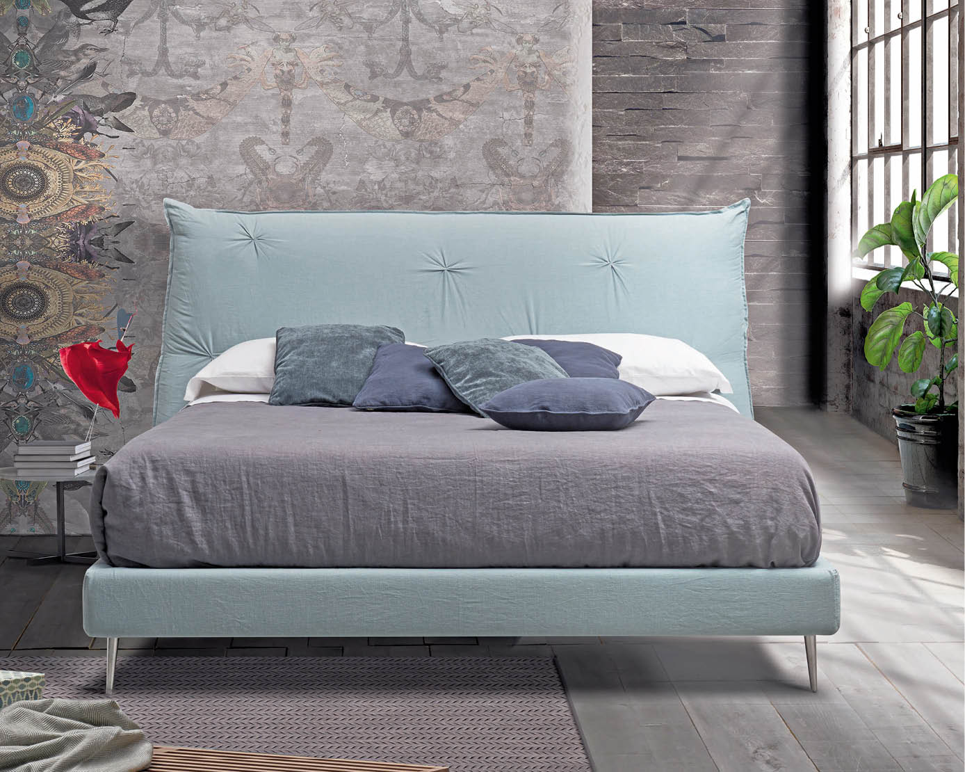 A splendid example of fusion between furnishing and fashion. The important headboard is highlighted even more by the precious visible stitching cut and sew model.