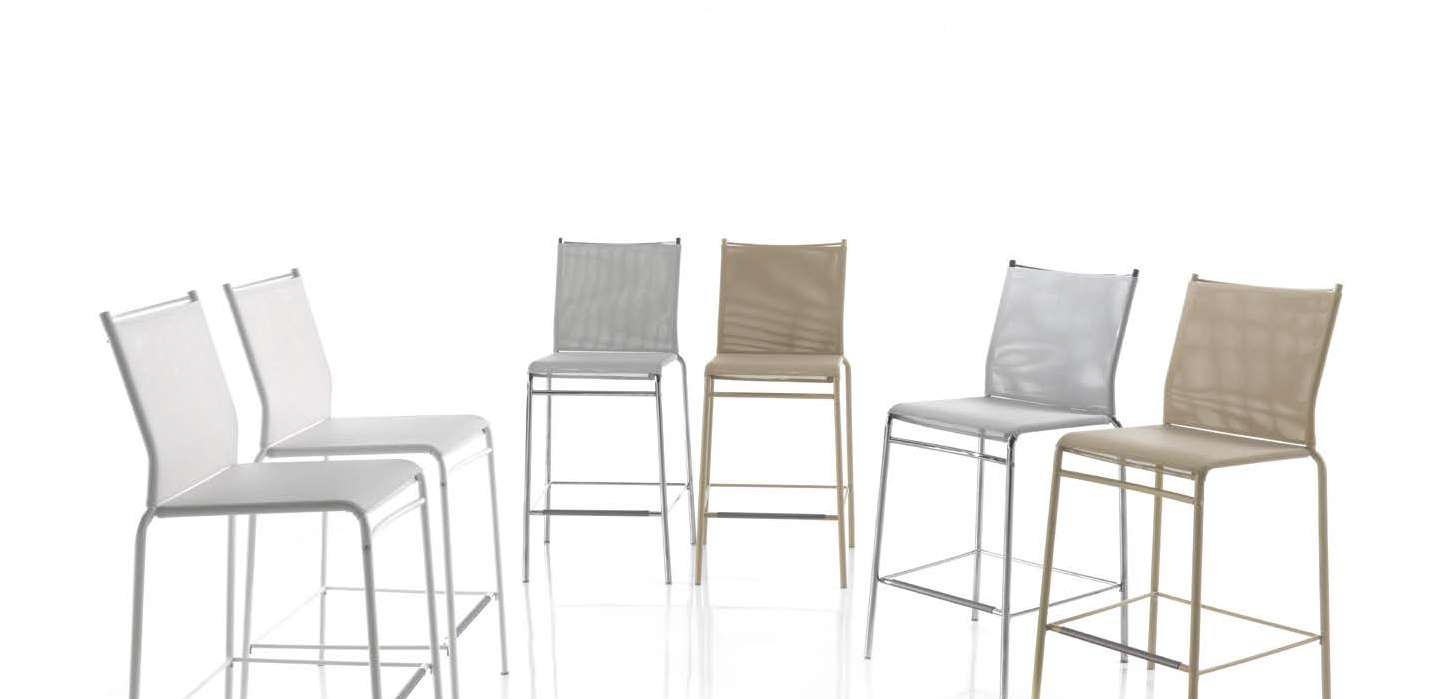 Liu' stool by Ingenia with a steel frame available in various finishes. The seat and backrest of the Liu' stool by Ingenia are made of Texplast, also available in various colors. The Liu' stool, with its simple and functional design, is a perfect fit for the kitchen. Also available in an outdoor version.