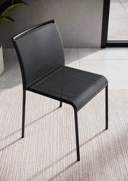 Lola stackable chair by Ingenia with lacquered steel structure and both seat and back in Texplast. Available in the outdoor version or in the indoor version.