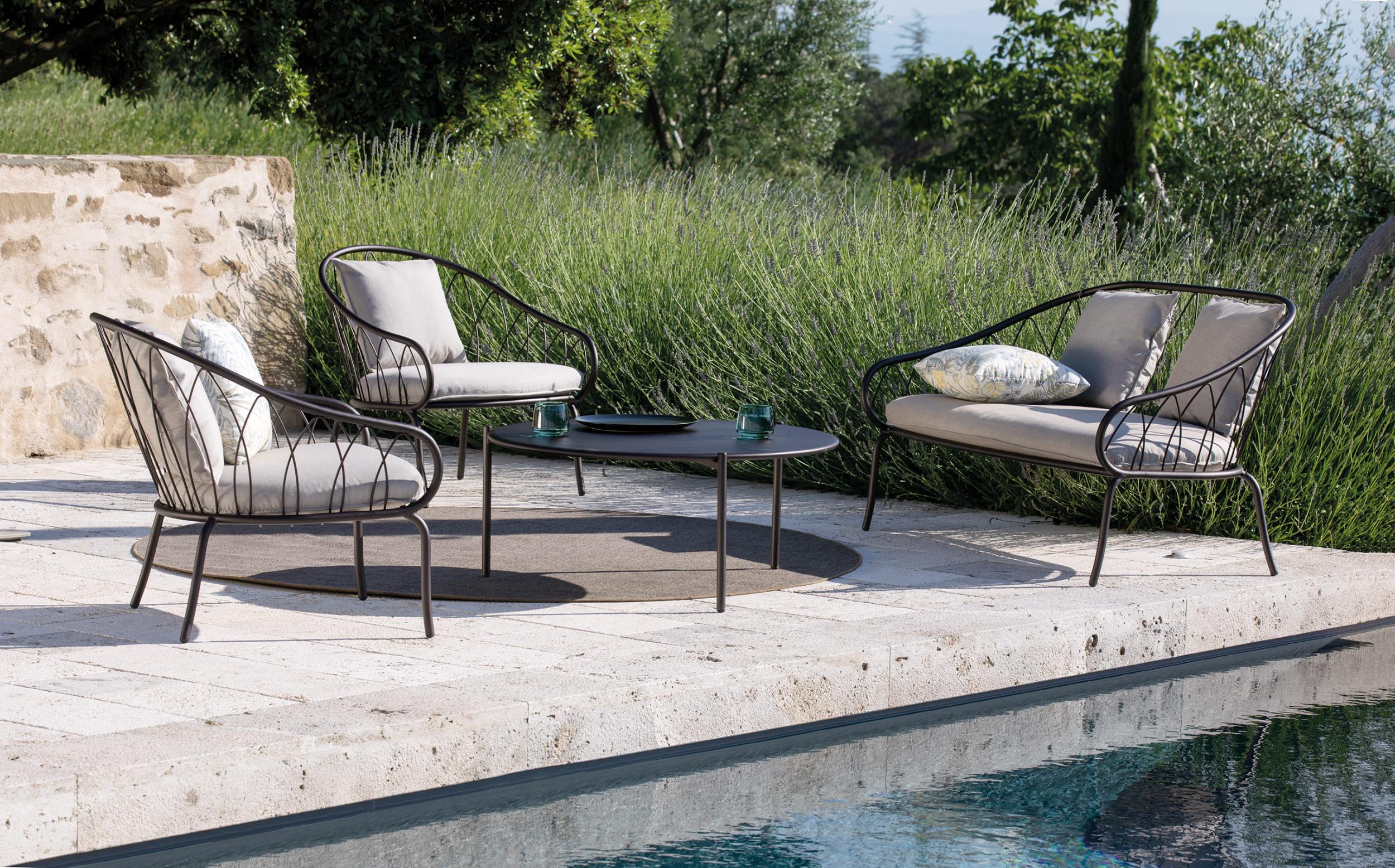 A collection with a contemporary taste, in which the interweaving of basic geometric shapes and essential lines creates a dynamic and functional atmosphere. The outdoor living room becomes a fluid space, which integrates perfectly into any environment.