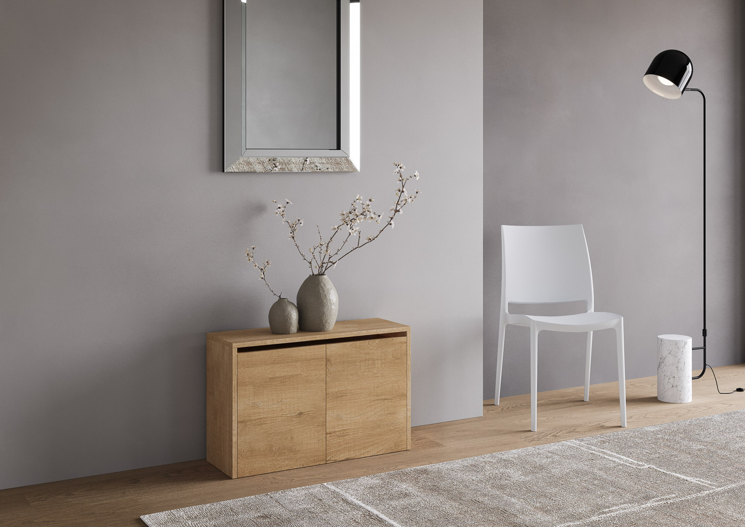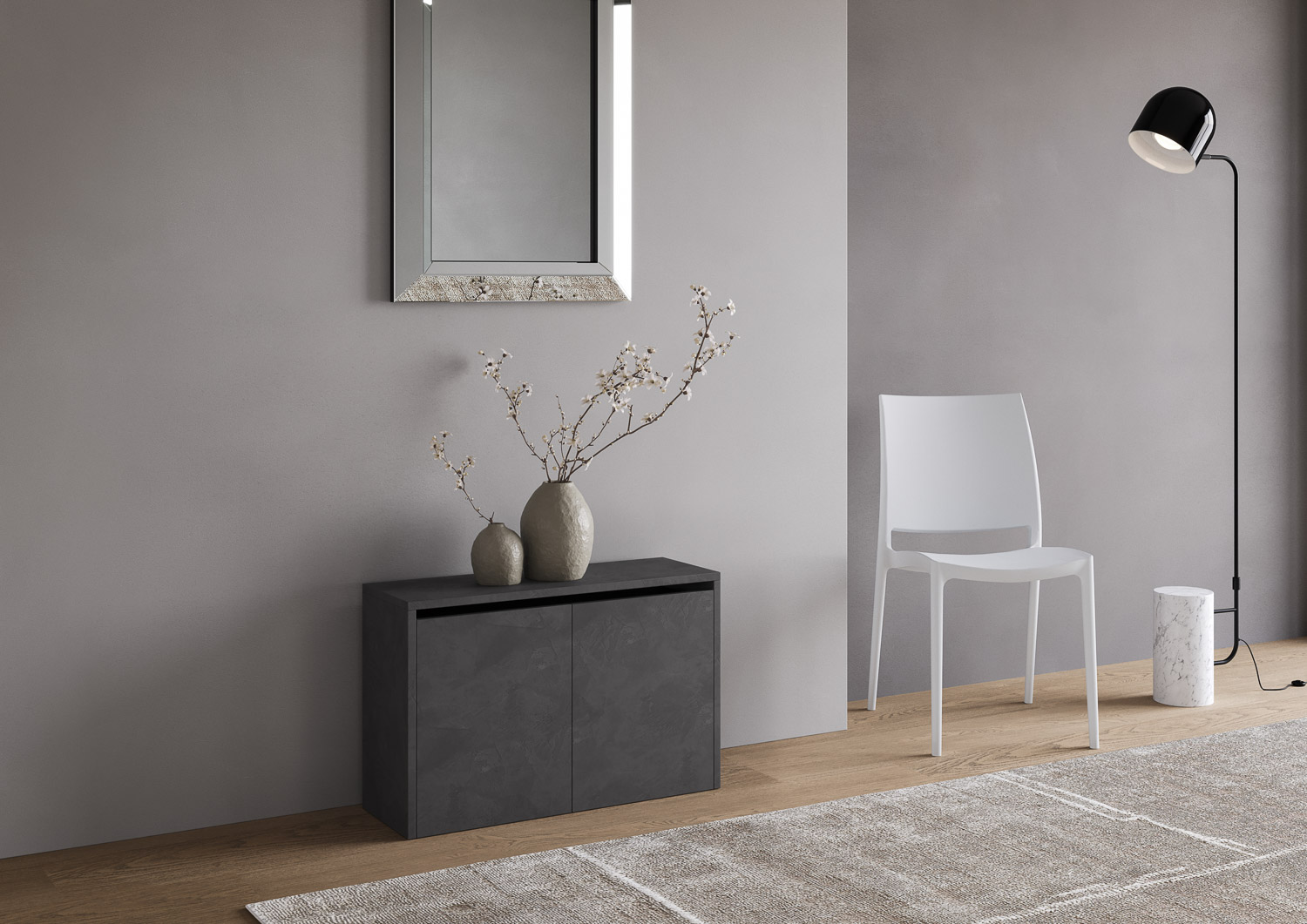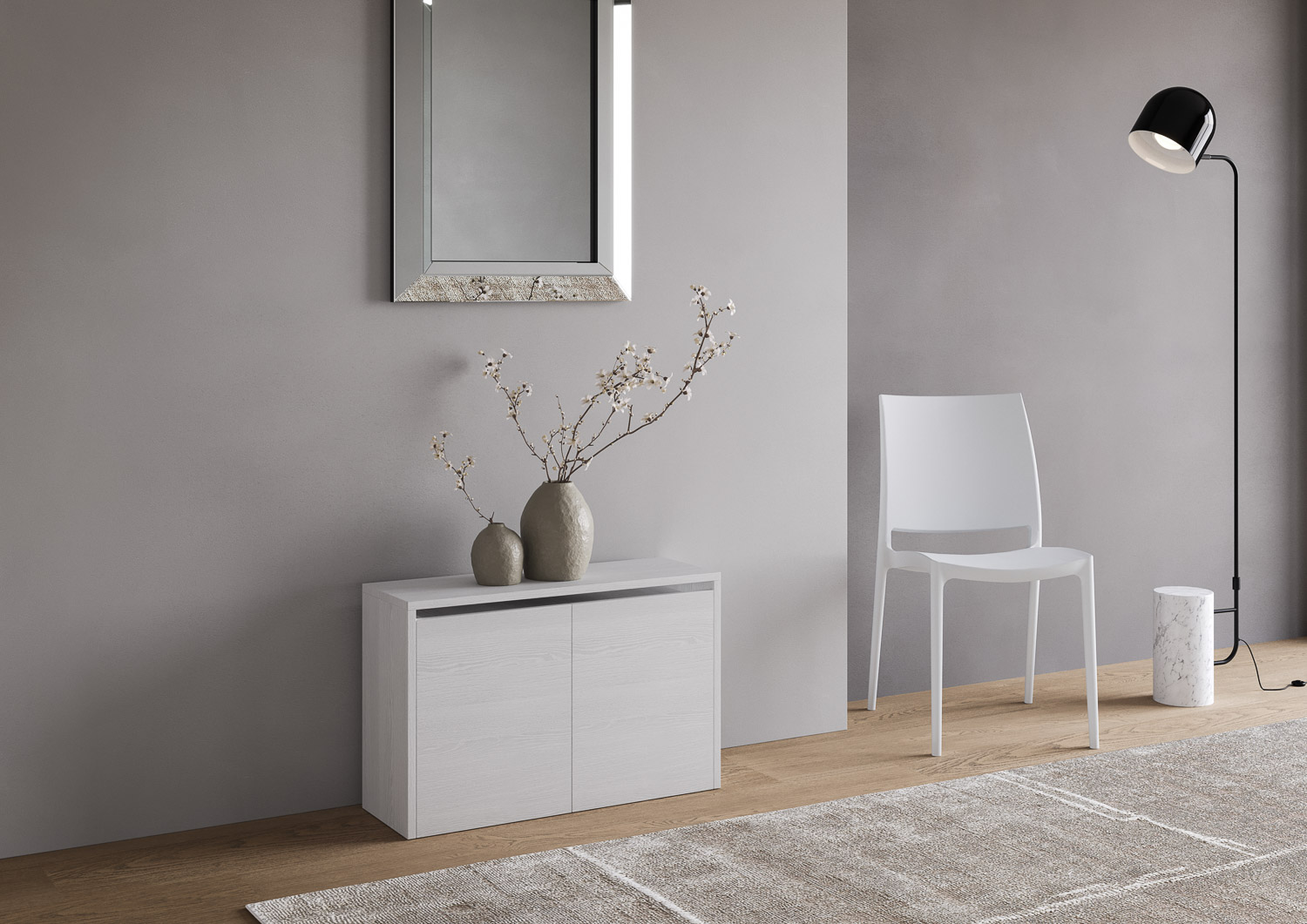 Evolve extendable bench: a practical extendable bench with very small dimensions that, when needed, transforms into a bench up to 300 cm long, capable of accommodating up to 6 people. The bench is supplied with 4 extensions of 57 cm each. When not in use, the extensions can be stored inside a storage compartment created in the structure of the bench. Equipped with practical wheels for easy movement. Extension mechanism with sturdy telescopic aluminum guides. Made with melamine panels. Itamoby Made in Italy product Bench dimensions: Closed bench: L.72 P.26 H.45 cm Length with 1 extension: 129 cm Length with 2 extensions: 186 cm Length with 3 extensions: 243 cm Length with 4 extensions: 300 cm