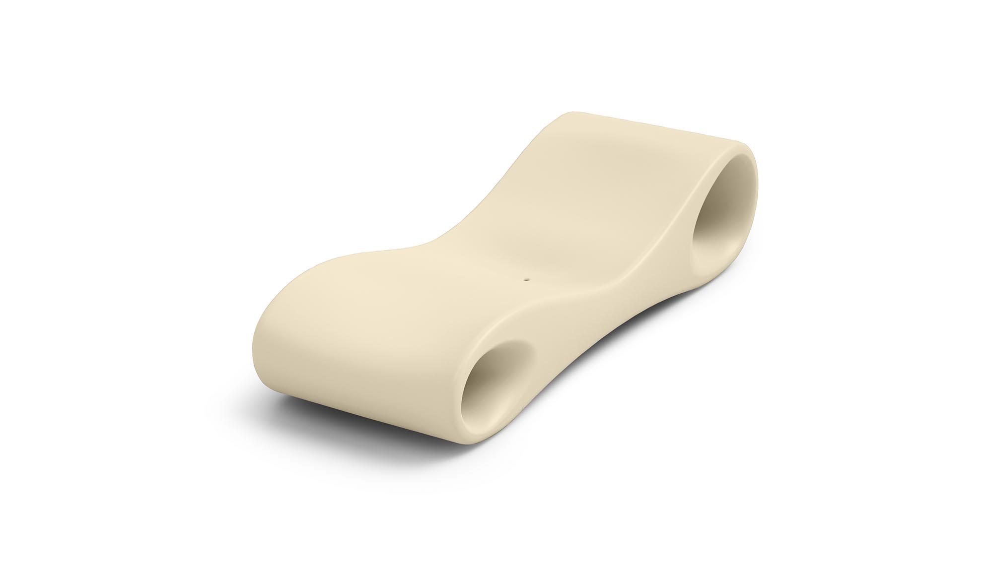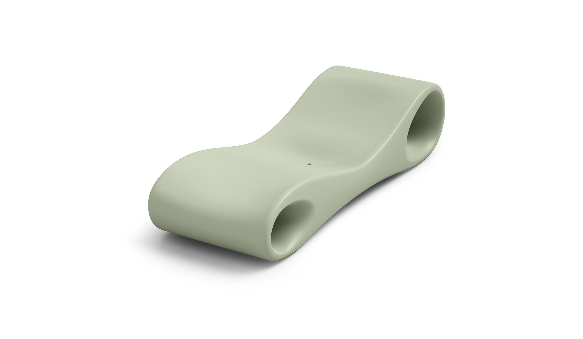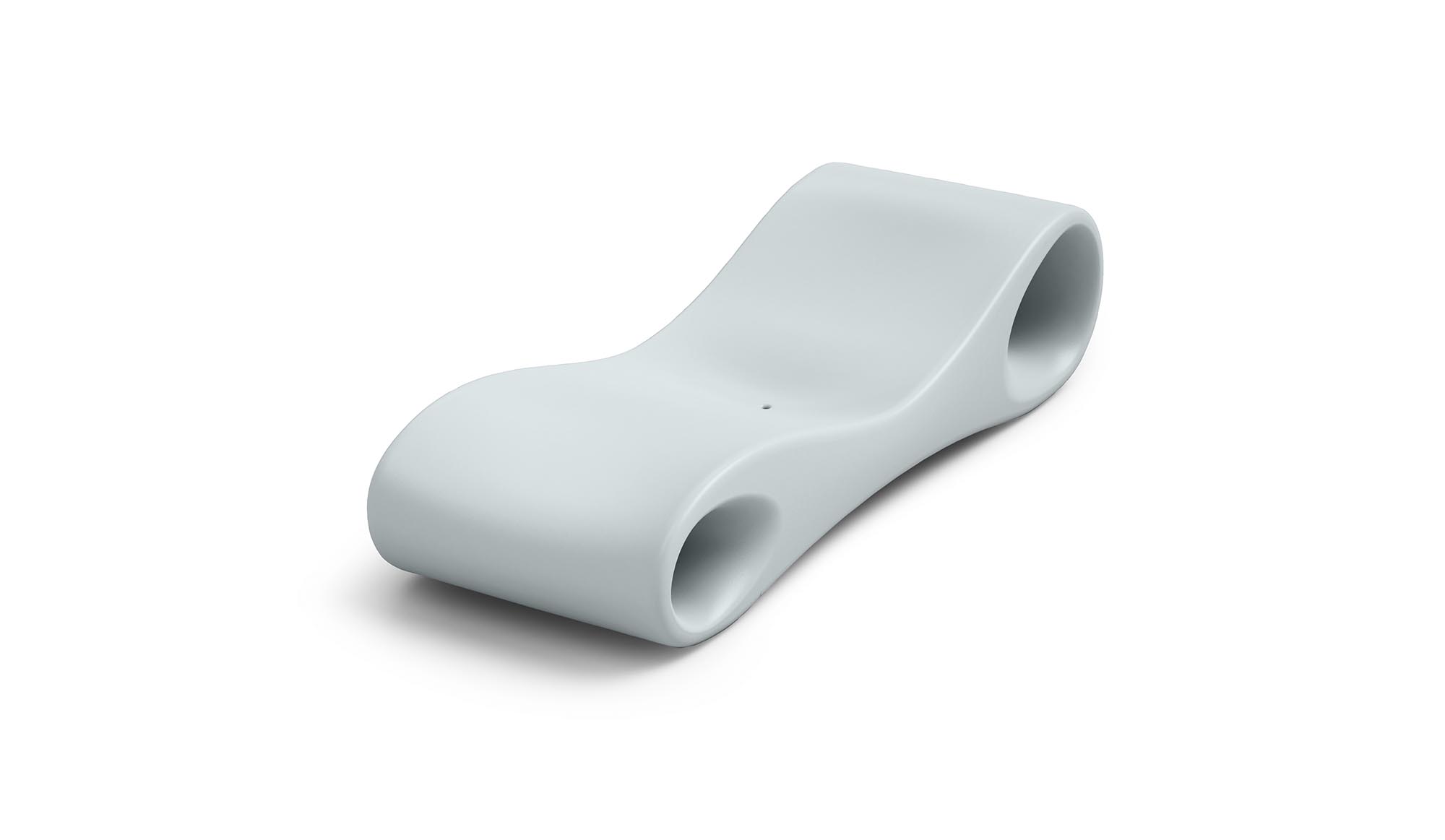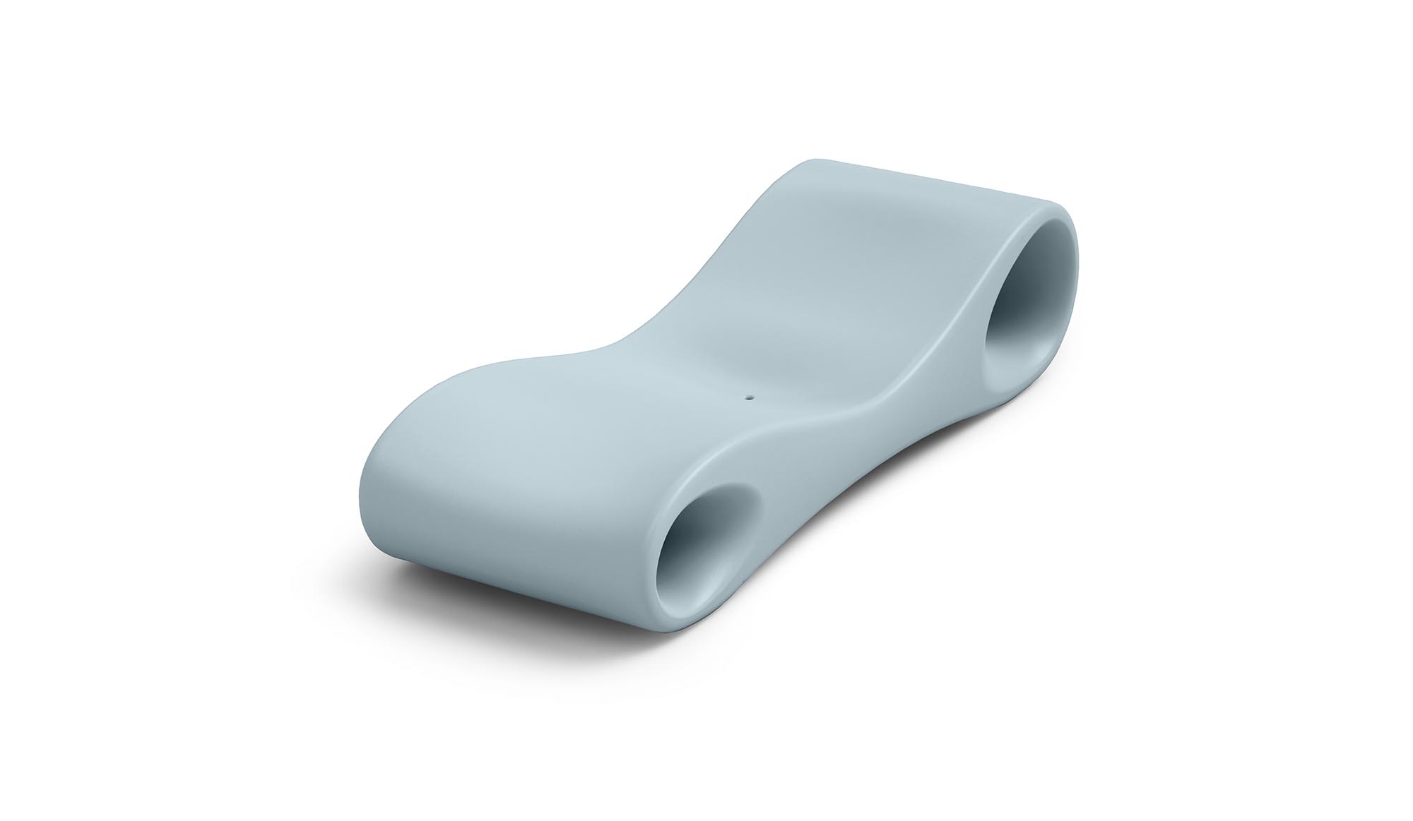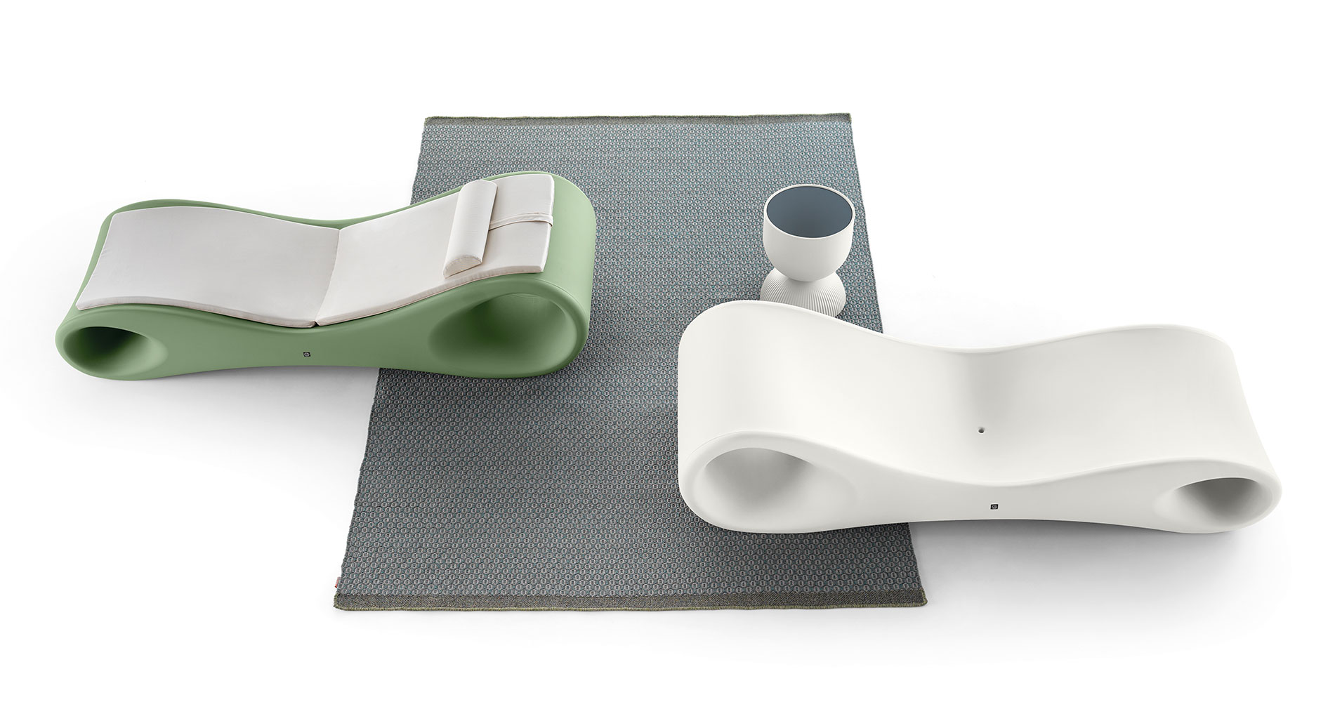 The shape has been designed to be as comfortable as possible, without neglecting practical details, such as the hole for water drainage and the two openings that, when necessary, can become convenient support shelves. Made of polyethylene, Slice is easy to wash and resistant to atmospheric agents.
