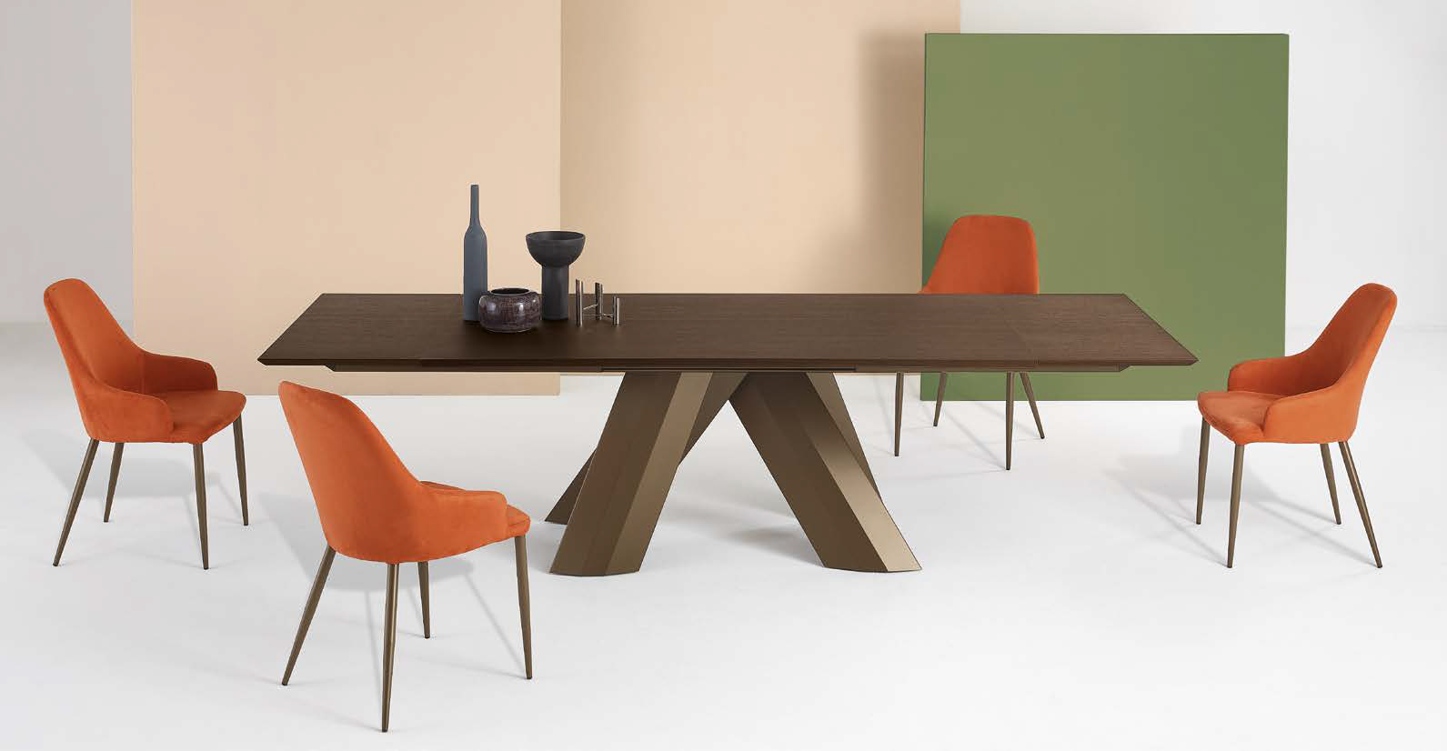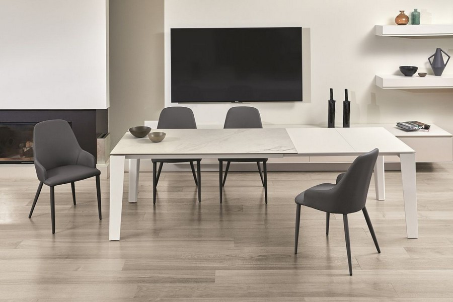 Matilda chair by Ingenia available in the version with lacquered steel structure, padded seat and back in numerous finishes or with steel structure and completely upholstered in numerous finishes.