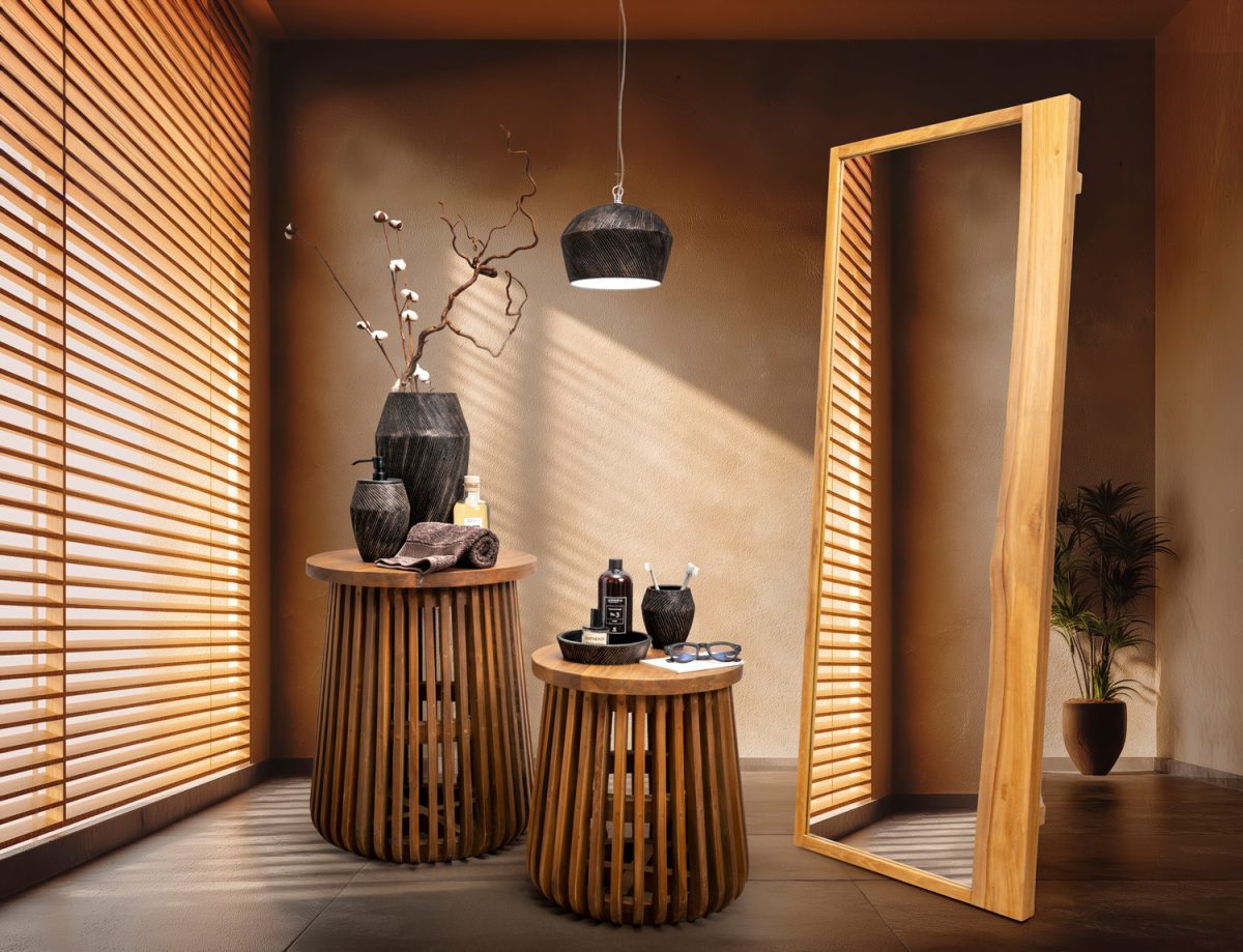 A masterpiece to reflect on! Full-length floor-standing mirror in reclaimed teak, frame with one natural side,   3mm glass mirror. Shipping in single wooden crate.
